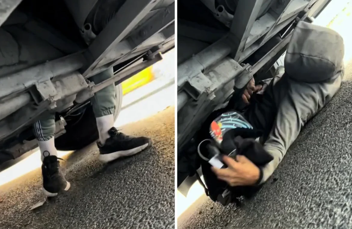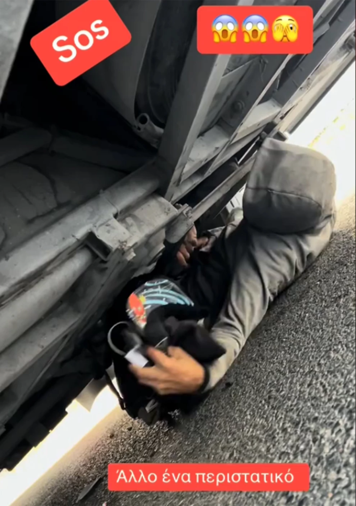 Συγκλονίζουν οι εικόνες που καταγράφηκαν και δείχνουν δύο μετανάστες να έχουν κρυφτεί κάτω από ένα λεωφορείο, με κίνδυνο τη ζωή τους. «Δείτε εδώ πού σφήνωσε ο άνθρωπος για να πάει Ελλάδα. Δεν υπάρχει ο τύπος», ακούγεται να λέει κάποιος στο βίντεο, το οποίο αναρτήθηκε στο TikTok.