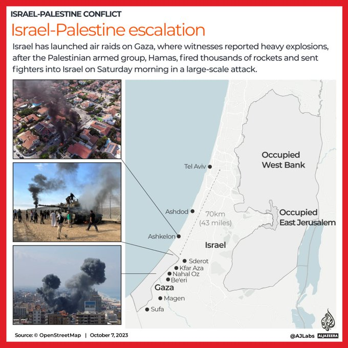 Ο Ισραηλινός πρωθυπουργός, Μπέντζαμιν Νετανιάχου, προετοίμασε τους ομοεθνείς του για έναν «μακρύ και δύσκολο πόλεμο», δεσμευόμενος ότι η Χαμάς θα πληρώσει «ένα χωρίς προηγούμενο τίμημα». Στόλο συνολικά 90 αεροσκαφών στέλνουν οι ΗΠΑ στην Ανατολική Μεσόγειο.