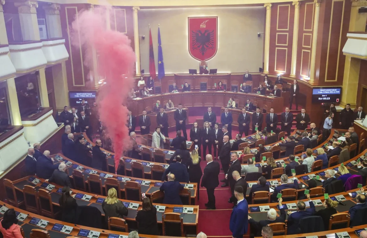 Η συνεδρίαση της ολομέλειας κράτησε μόλις 10 λεπτά, με τους σοσιαλιστές του Έντι Ράμα να περνούν κάποια νομοσχέδια με τη χρήση πράσινων καρτών.