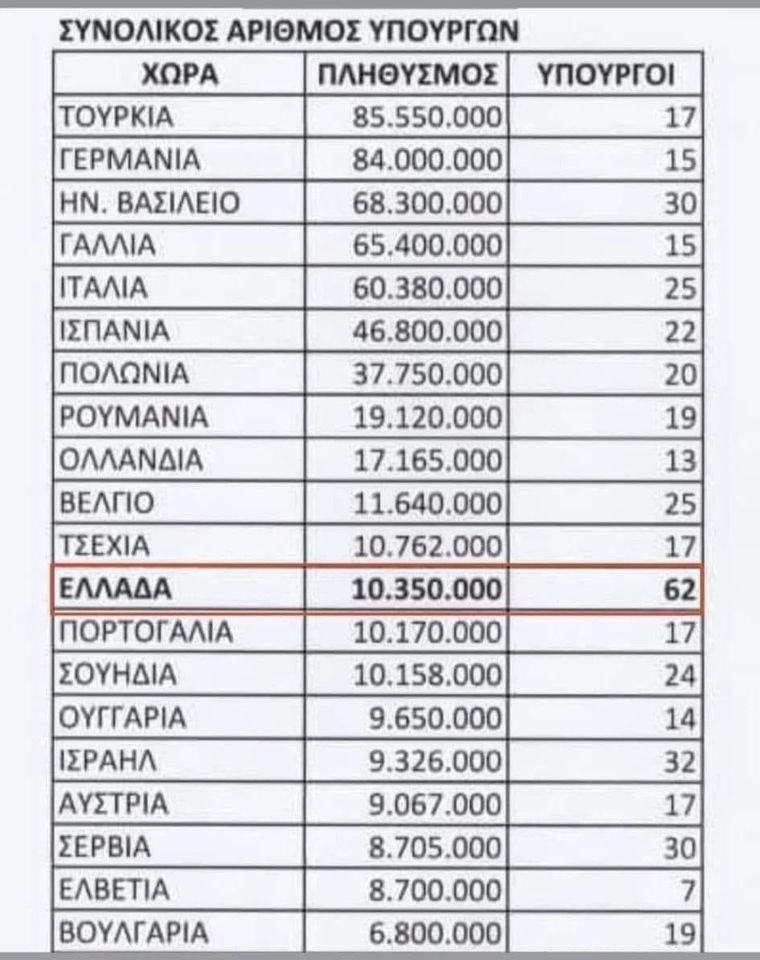 Κόσμος Αριθμός υπουργών ανα χώρα Φεβ 20, 2024 to kentri Twitter Facebook LinkedIn Pinterest Email ❝ ετικέτες ❞ #ΥΠΟΥΡΓΟΙ