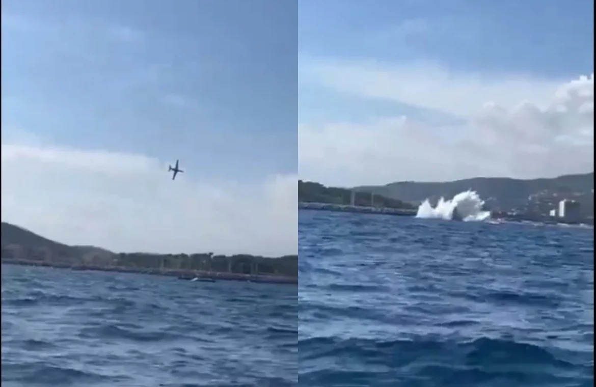 Στο βίντεο, φαίνεται το αεροπλάνο να πέφτει στη θάλασσα, ανάμεσα σε δεκάδες σκάφη.