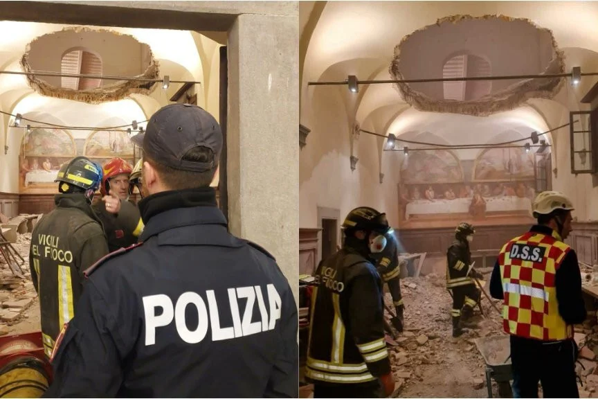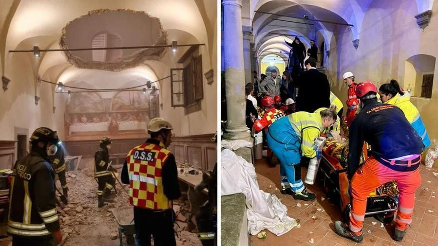 Το πάτωμα υποχώρησε την ώρα που περίπου 70 καλεσμένοι χόρευαν σε αίθουσα στον πρώτο όροφο πρώην μοναστηριού της Πιστόια, που έχει μετατραπεί σε εστιατόριο.