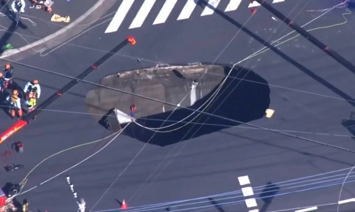 Απίστευτες εικόνες στην Ιαπωνία. Κάτοικοι προαστίου του Τόκιο απομακρύνθηκαν σε ακτίνα 200 μέτρων από την τρύπα βάθους έξι μέτρων.