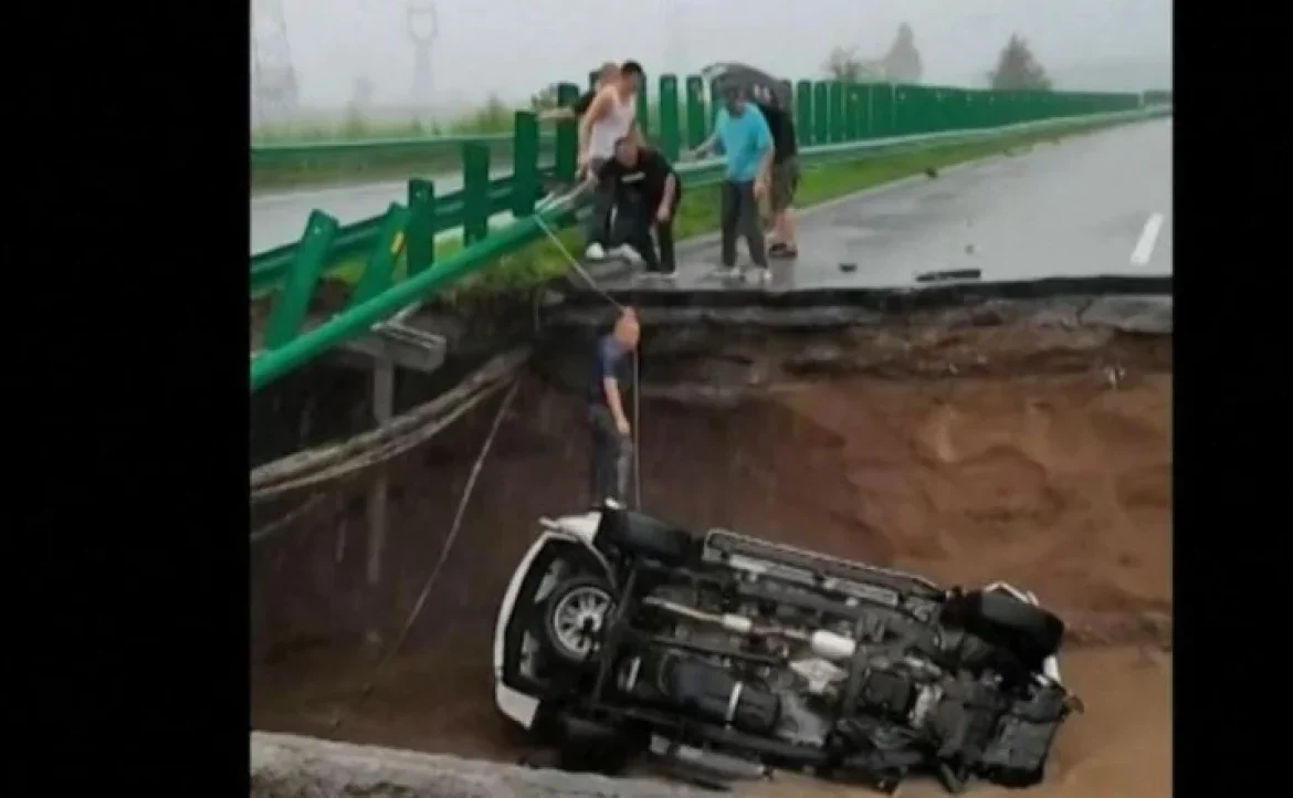 «Βουτιά» έκανε ο οδηγός ενός SUV στη βόρεια Κίνα, όταν το αυτοκίνητό του έπεσε από γέφυρα η οποία κατέρρευσε λόγω καταρρακτώδους βροχής