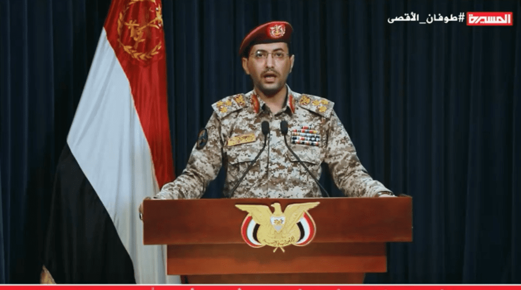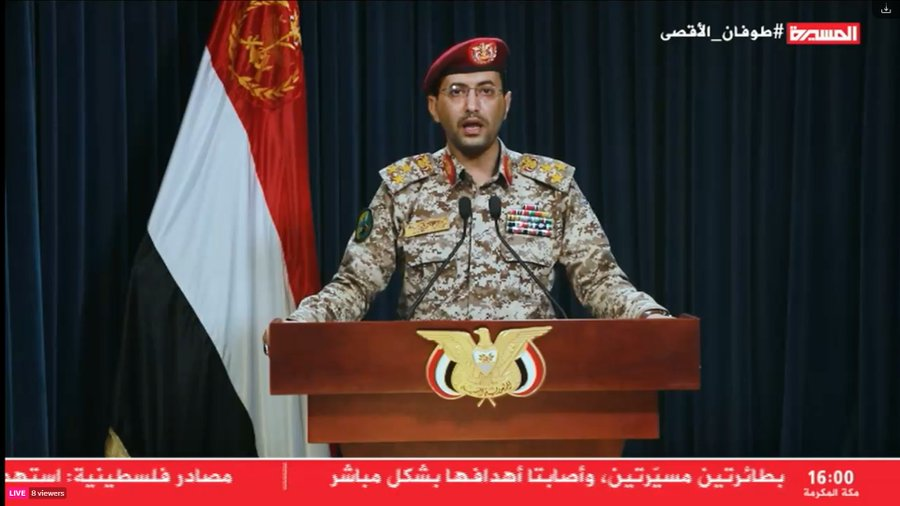 Yemeni Army Spokesman Yahya Saree: “We, out of a sense of religious, moral, humanitarian and national responsibility, and in response to the demands of our Yemeni people and the demands of free peoples, and to provide relief to our oppressed people in Gaza, considered it necessary for the Yemeni Armed Forces to carry out their duty by relying on God and in victory over the historical oppression of the dear Palestinian people.”