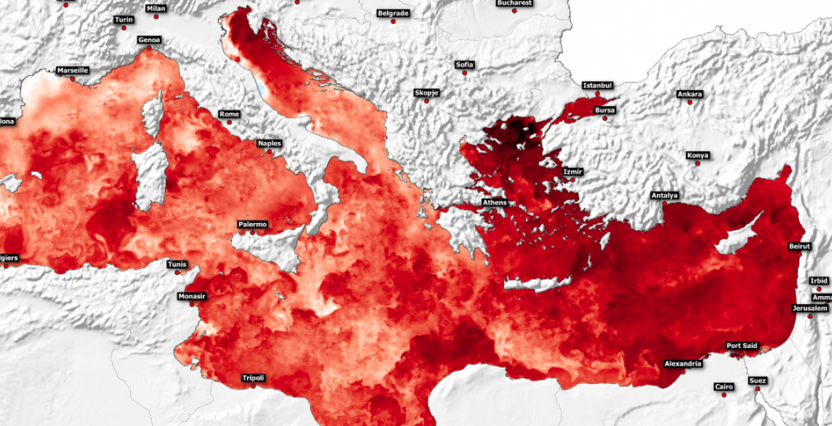Η επιφανειακή θερμοκρασία της θάλασσας τις πρώτες ημέρες του 2024 έχει ξεπεράσει τα κανονικά για την εποχή επίπεδα (μέσος όρος θερμοκρασίας μεταξύ 2008-2020) κατά 4 – 6 βαθμούς Κελσίου στο Αιγαίο, τη Βόρεια Αδριατική και Μαύρη Θάλασσα, στη Θάλασσα του Λεβάντε και το Νοτιοανατολικό Ιόνιο πέλαγος.