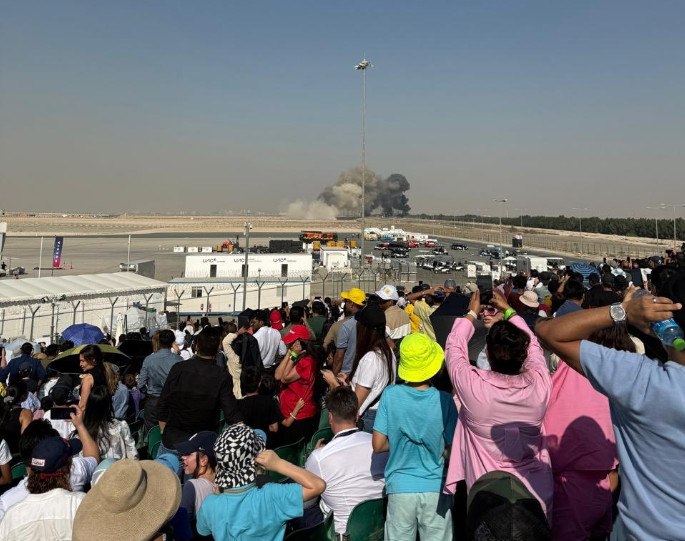 Βίντεο και φωτογραφίες που κυκλοφορούν στα social media δείχνουν μαύρο καπνό να υψώνεται πάνω από το Διεθνές Αεροδρόμιο Al Maktoum στο Dubai World Central, ενώ το πλήθος των θεατών παρακολουθούσε, και σειρήνες ηχούσαν μετά τη συντριβή.