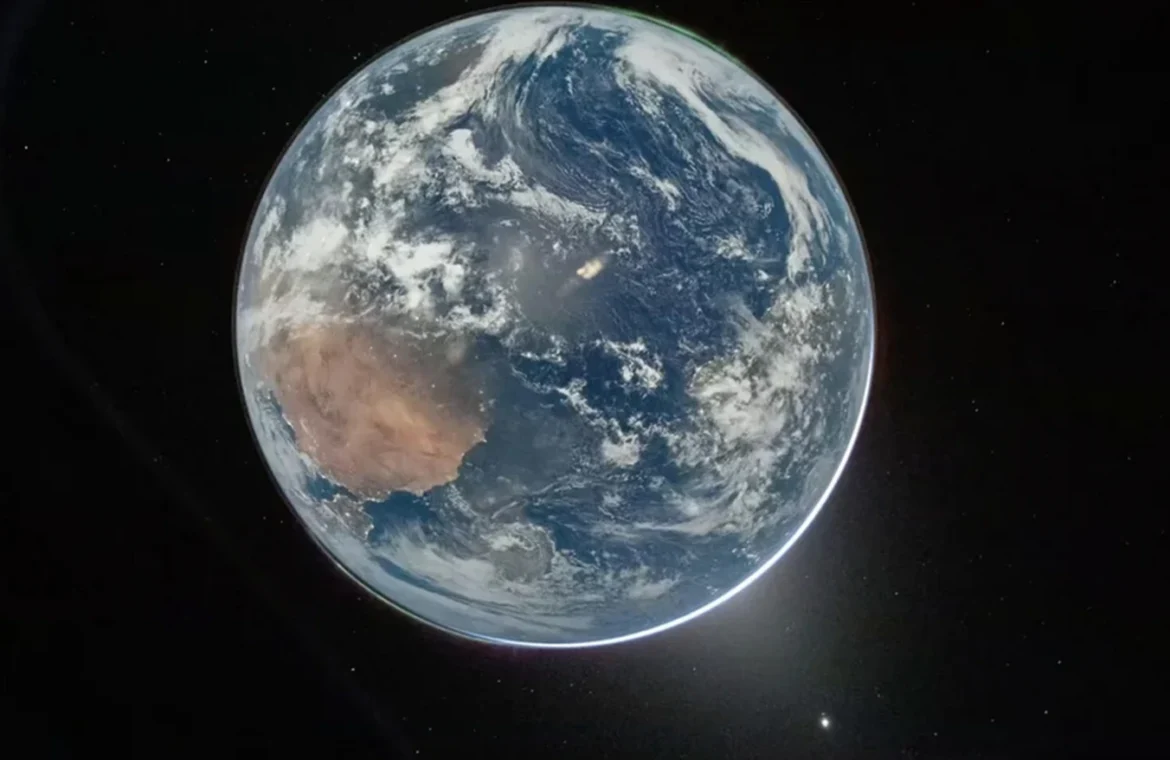 Η δεύτερη εικόνα παρουσιάζει τη Γη ως μια «γαλάζια κουκκίδα», όπως την αντικρίζει το πλήρωμα καθώς απομακρύνεται, ενισχύοντας την αίσθηση του απέραντου διαστήματος και της μικρότητας του πλανήτη μας.