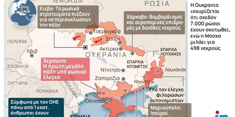 Εν τω μεταξύ, οκτώ ημέρες μετά την έναρξη της ρωσικής εισβολής στην Ουκρανία, η Μόσχα έδωσε τα πρώτα νούμερα για τον αριθμό των νεκρών.