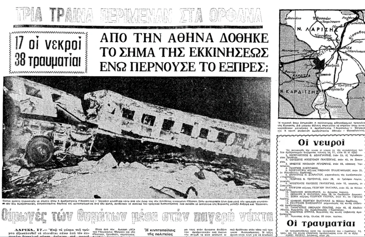 Σαν σήμερα το 1972, στον θεσσαλικό κάμπο, ανάμεσα στους σταθμούς Δοξαρά Λάρισας και Ορφανών Καρδίτσας, γράφεται μία από τις πιο σκοτεινές σελίδες στην ιστορία των ελληνικών σιδηροδρόμων. Η υπερταχεία «Ακρόπολις Εξπρές», που ερχόταν από την Κεντρική Ευρώπη προς την Ελλάδα, συγκρούεται μετωπικά σε μονή γραμμή με την επιβατική αμαξοστοιχία που οι άνθρωποι της εποχής αποκαλούσαν «πόστα», επειδή μετέφερε και ταχυδρομείο.