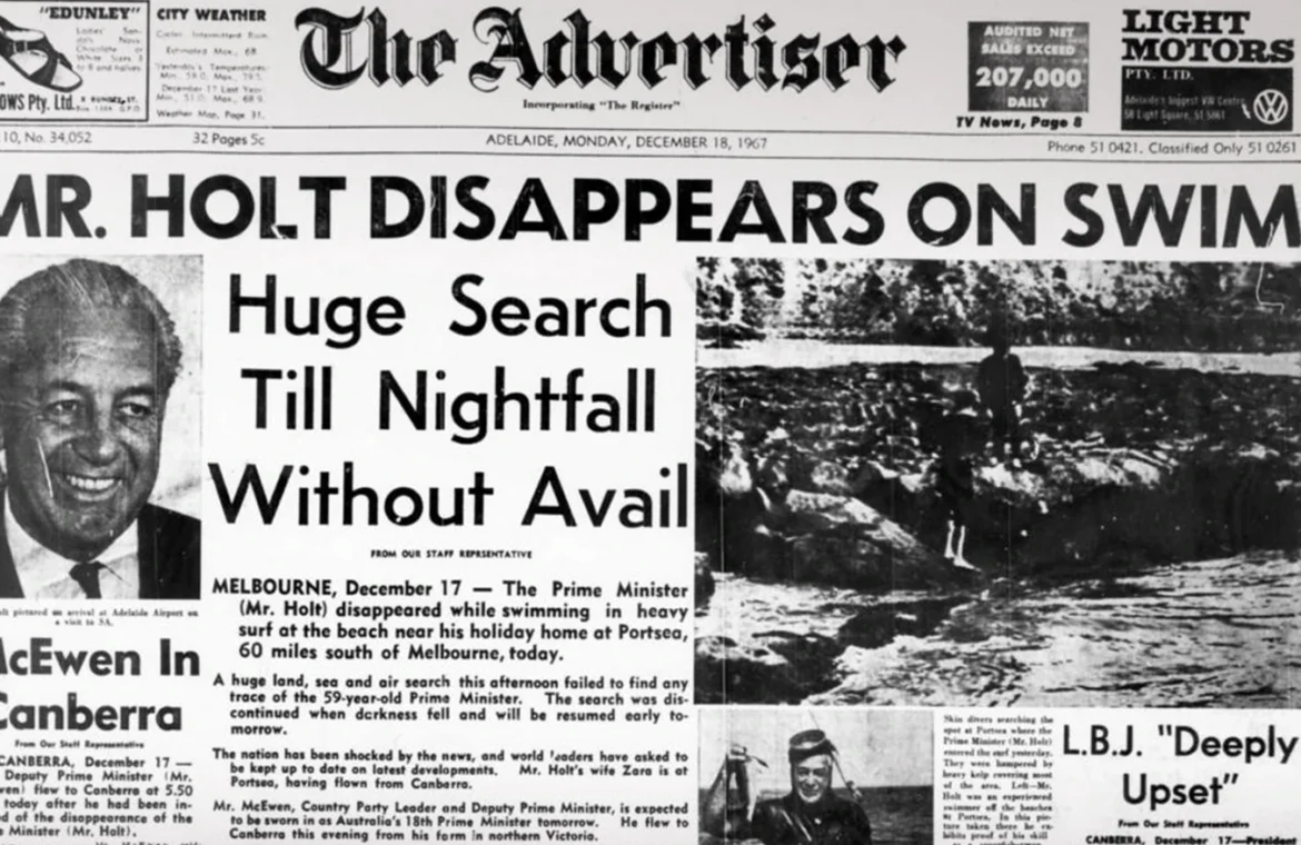 Στις 17 Δεκεμβρίου 1967, η Αυστραλία βυθίστηκε στο σοκ όταν ο εν ενεργεία πρωθυπουργός της χώρας, Χάρολντ Χολτ, εξαφανίστηκε μυστηριωδώς ενώ κολυμπούσε στην παραλία. Έκτοτε, ούτε το σώμα του βρέθηκε ποτέ ούτε δόθηκαν οριστικές απαντήσεις για το τι ακριβώς συνέβη. Η υπόθεση έμεινε στην Ιστορία ως μία από τις πιο παράξενες και ανεξιχνίαστες εξαφανίσεις πολιτικού ηγέτη στον 20ό αιώνα.