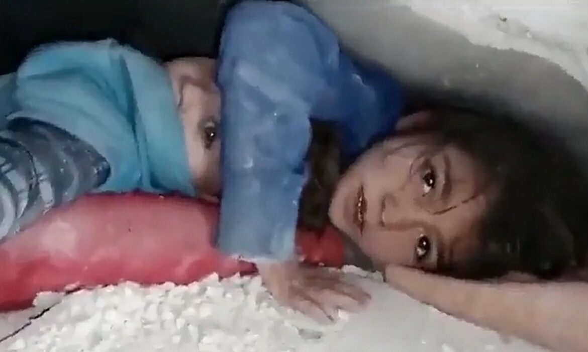 Το 7χρονο κοριτσάκι στη Συρία μαζί με τον αδελφό της αντικρίζουν με συγκίνηση τους διασώστες οι οποίοι τους βρήκαν και επιχείρησαν τον απεγκλωβισμό τους. Το μικρό κοριτσάκι ακούγεται να λέει «δεν θέλω παιχνίδια, θέλω να μας βγάλετε από εδώ».