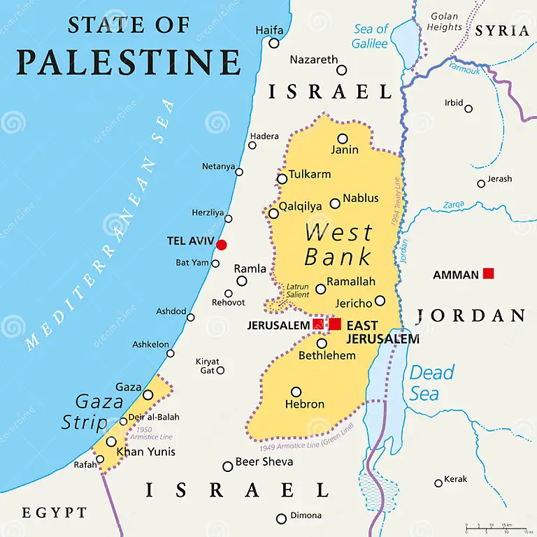 Τα εδάφη της Γάζας και της Δυτικής Όχθης χωρίζονται μεταξύ τους από ισραηλινό έδαφος. Και οι δύο βρίσκονται υπό τη δικαιοδοσία της Παλαιστινιακής Αρχής, αλλά η Λωρίδα της Γάζας κυβερνάται από τη Χαμάς, μια μαχητική, φονταμενταλιστική ισλαμική οργάνωση, η οποία ήρθε στην εξουσία στις τελευταίες εκλογές του 2006.
