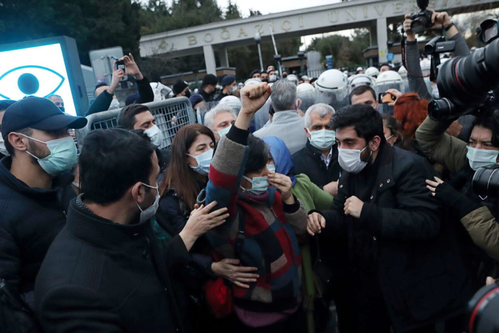 Σε μια διαδήλωση που οργανώθηκε από τα κυριότερα συνδικάτα, οι διαδηλωτές διαμαρτυρήθηκαν για την κατρακύλα της τουρκικής λίρας και για τον πληθωρισμό που έφθανε το Νοέμβριο, σύμφωνα με τα επίσημα στοιχεία, το 21,31% σε ετήσια βάση.