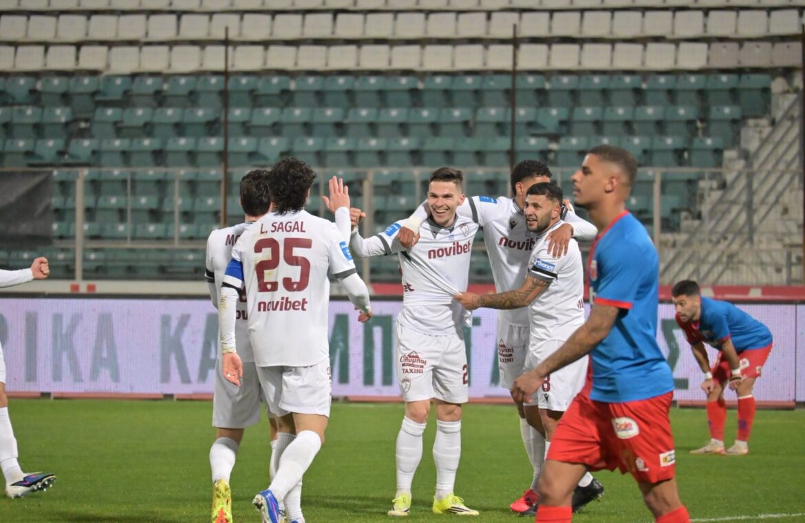 Η ομάδα της Λάρισας, με αριθμητικό πλεονέκτημα από το πρώτο ημίχρονο και απόλυτο πρωταγωνιστή τον Τούπτα, που σκόραρε δύο φορές πριν την ανάπαυλα, έδειξε χαρακτήρα και αποτελεσματικότητα, παίρνοντας μια νίκη μεγάλης σημασίας απέναντι σε έναν άμεσο βαθμολογικό αντίπαλο.