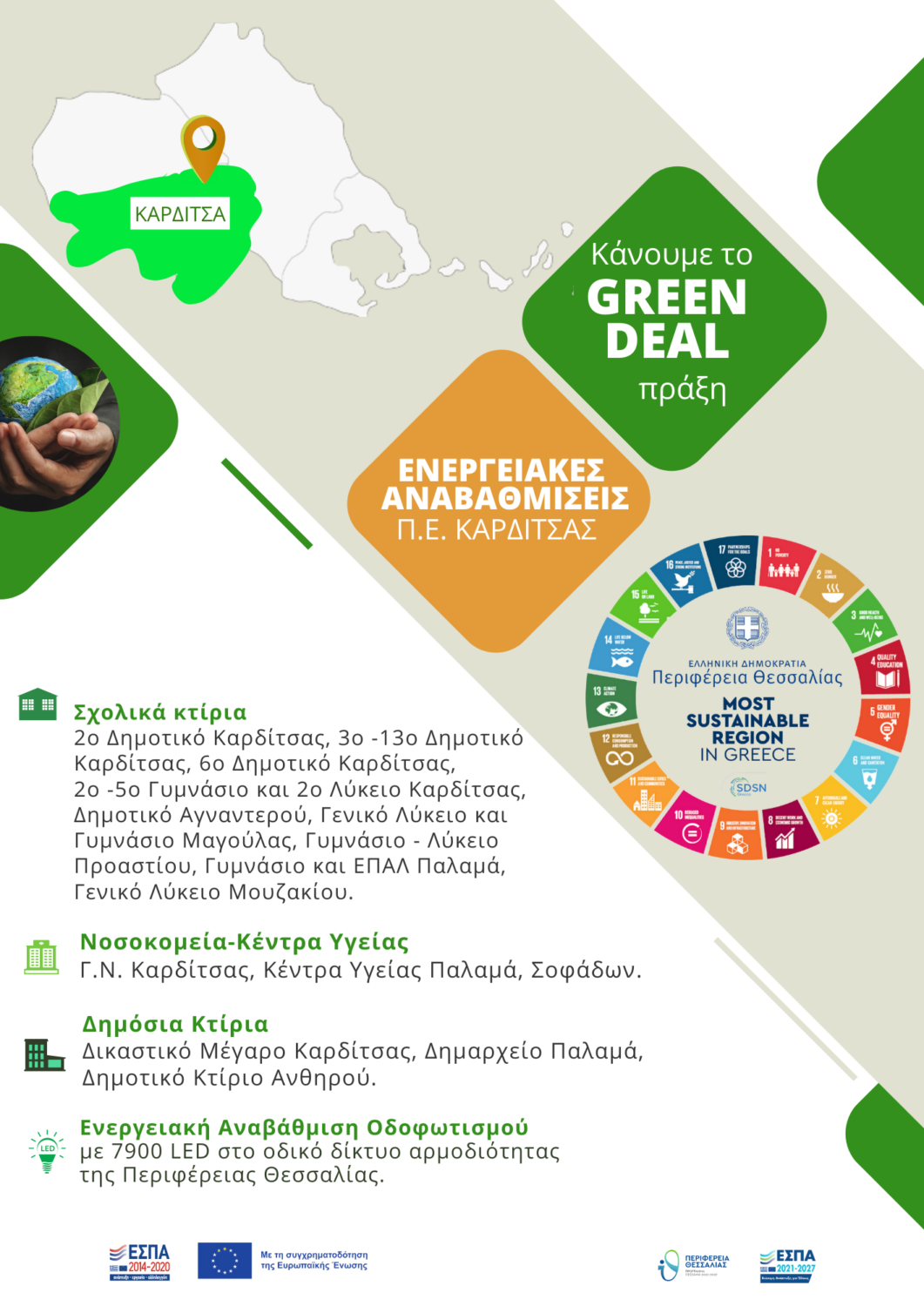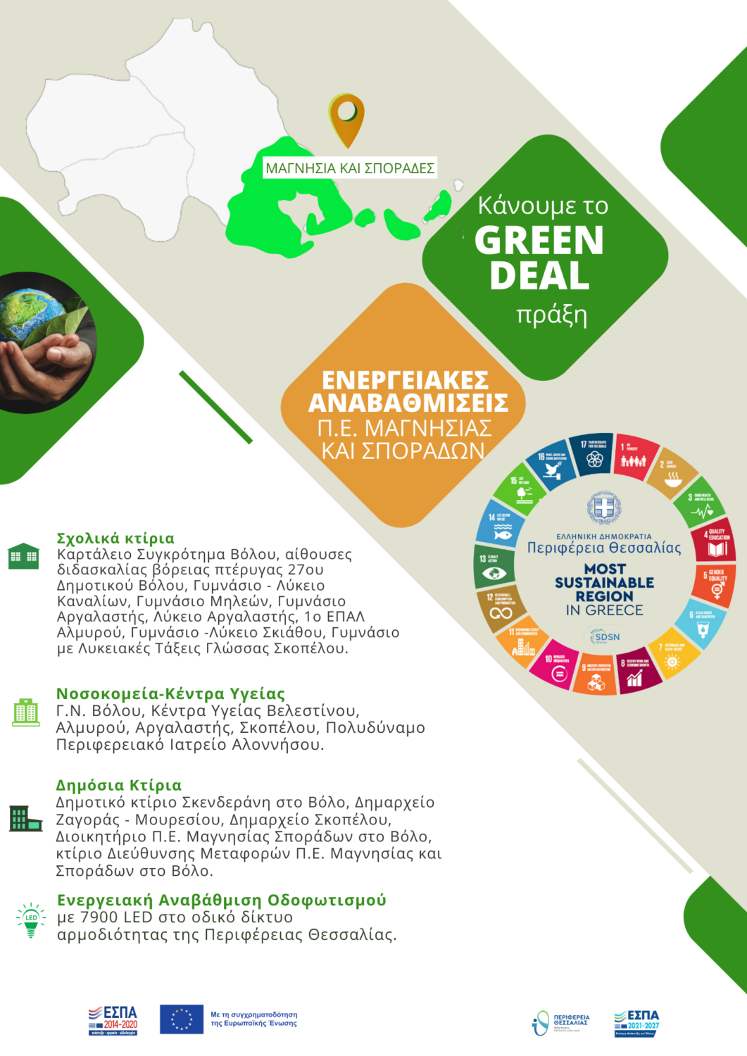 -Τα «πράσινα» κτίρια της Περιφέρειας Θεσσαλίας, έχουν επιλεγεί στα 200 καλύτερα Green Deal έργα της Ευρωπαϊκής Επιτροπής και του ευρωπαϊκού προγράμματος «Πράσινη Συμφωνία με Τοπική Δράση».