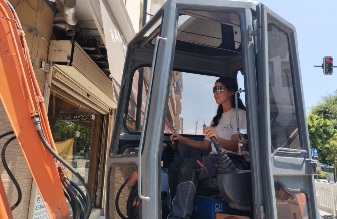 Μια νεαρή κοπέλα οδηγεί και χειρίζεται με μεγάλη δεξιοτεχνία έναν μικρό εκσκαφέα στα έργα που γίνονται στην οδό Μανωλάκη. Δεν είναι άλλη από την Αρετή Μιχάκη, μόλις 23 ετών η οποία ήδη κάνει αυτό το επάγγελμα τρία χρόνια, δηλαδή από τα 20 της.