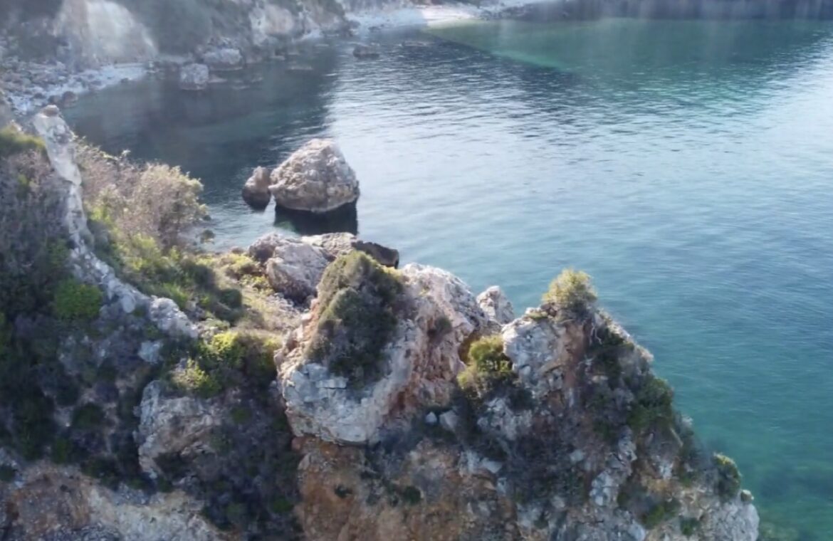 Υπάρχει μονοπάτι το οποίο κατεβαίνει μέχρι την παραλία.
