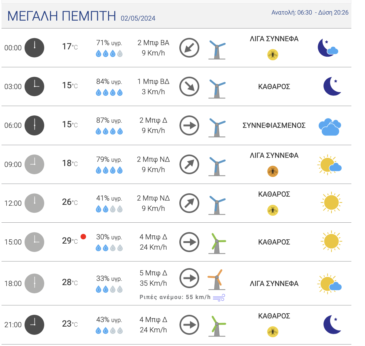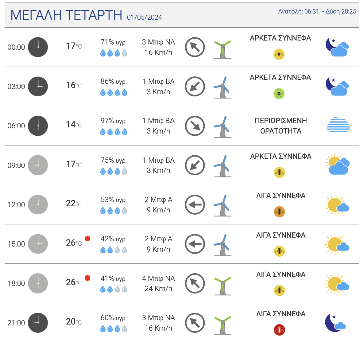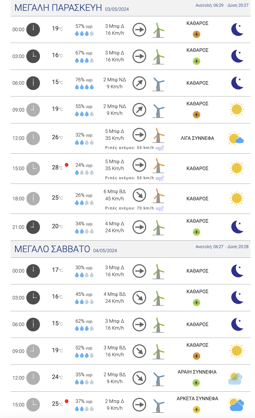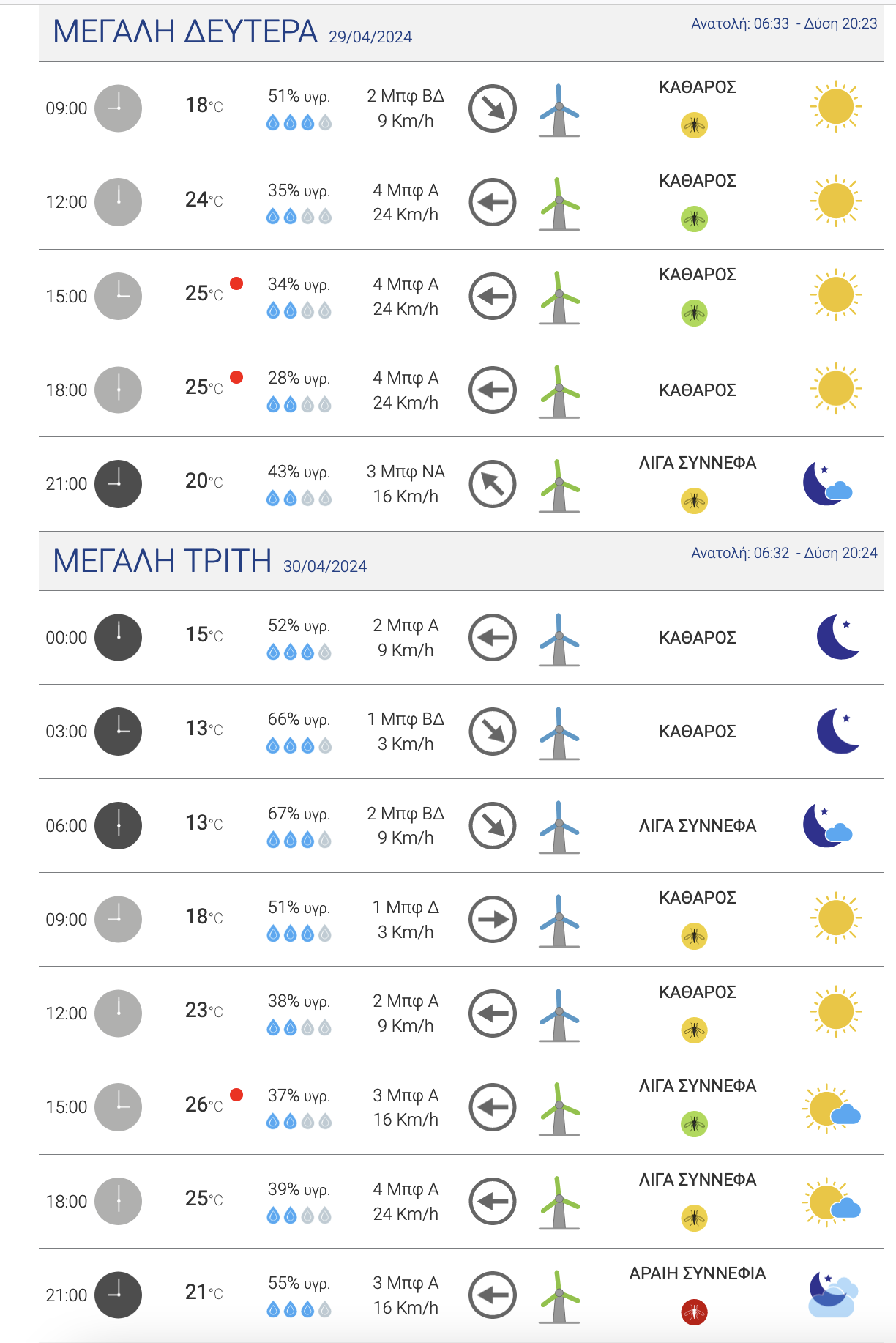 Αναλυτικά, η πίνακες με την πρόγνωση του καιρού από σήμερα Μεγάλη Δευτέρα έως και το Μεγάλο Σάββατο στην πόλη της Λάρισας: