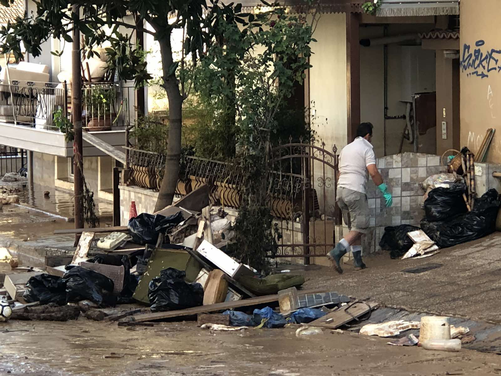 Όσο υποχωρούν τα νερά, τόσο αποκαλύπτεται το μέγεθος της καταστροφής κάτω από αυτά στη συνοικία του Αγίου Θωμά στη Λάρισα.