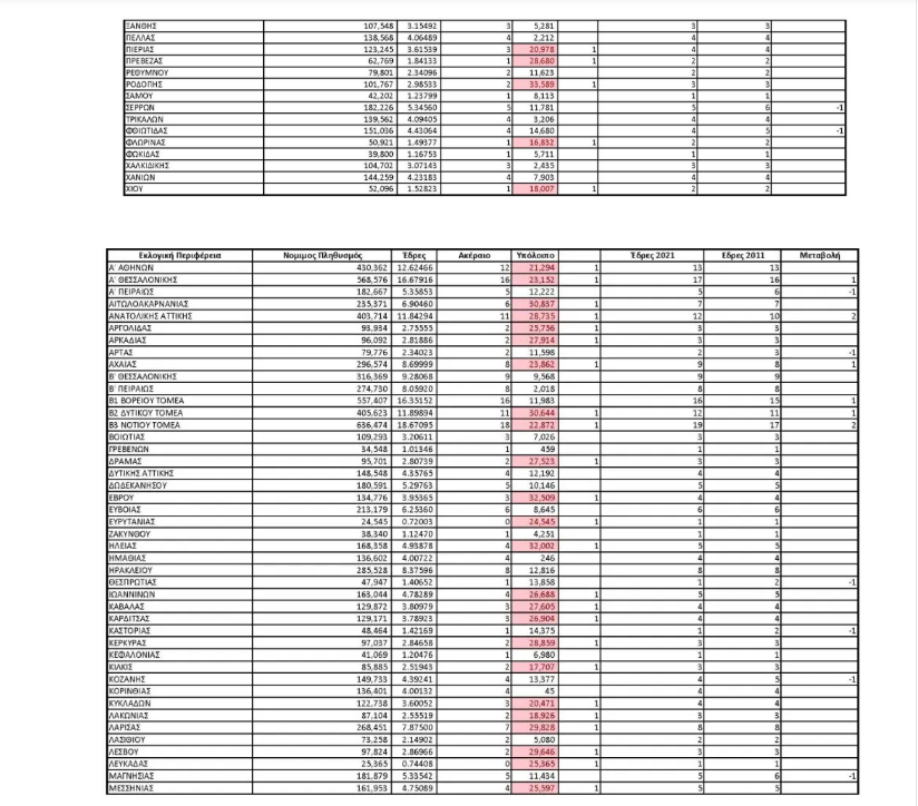 Στον αντίποδα οι έδρες αυτές θα αφαιρεθούν από την Α΄Πειραιά, τις Σέρρες, τη Φθιώτιδα, τη Μαγνησία, την Κοζάνη, την Άρτα, καθώς και την Καστοριά και τη Θεσπρωτία που γίνουμε πλέον μονοεδρικές περιφέρειες.