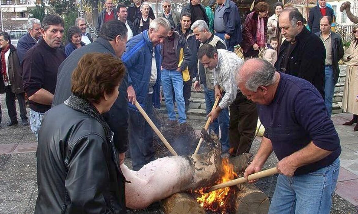 Ένα από αυτά τα έθιμα είναι η «γουρουνοχαρά». Και όταν λέμε χαρά, εννοούμε το γλέντι με το σφάξιμο και το ψήσιμο του γουρουνιού. Πρόκειται για ένα έθιμο που γιορτάζεται σε ορισμένα χωριά της περιοχής, ενώ στη Λάρισα αναβιώνει από τους κατοίκους της συνοικίας της Φιλιππούπολης οι οποίοι έλκουν την καταγωγή τους από την Ανατολική Ρωμυλία.