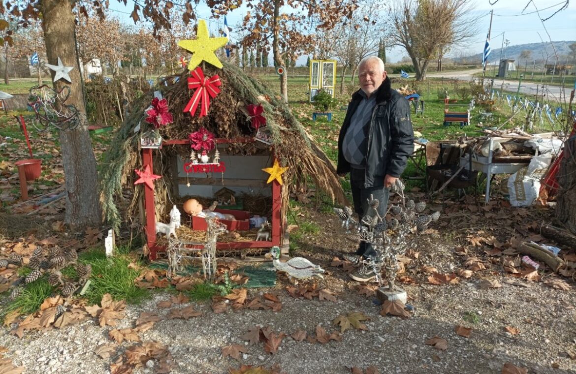 Το επισκεφθήκαμε στον οικισμό όπου και φέτος έχει δημιουργήσει ένα Χριστουγεννιάτικο πάρκο με δικές του καλλιτεχνίες, θέλοντας να δώσει μια γιορτινή νότα στο πνεύμα των ημερών.
