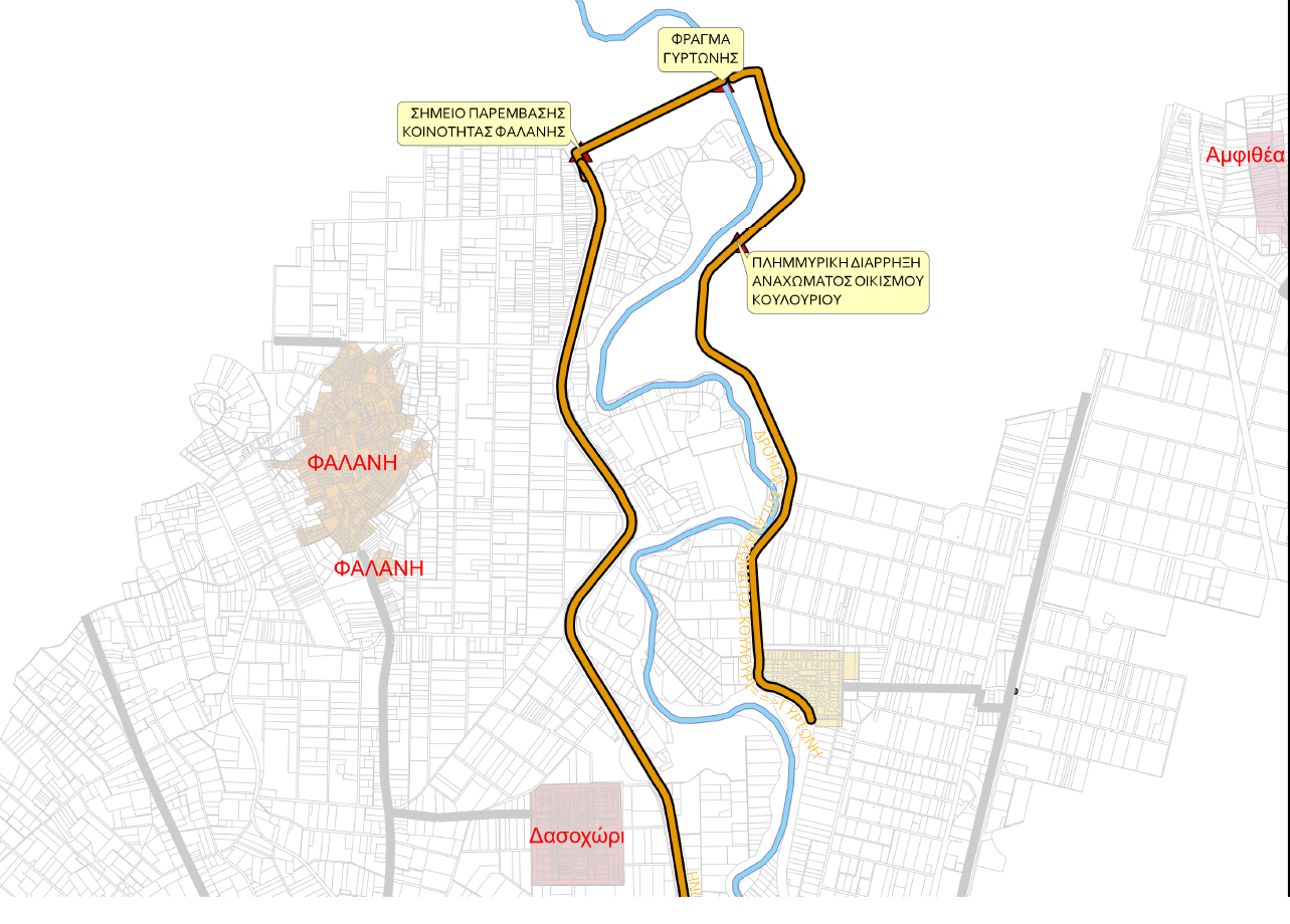 β) το σημείο παρέμβασης των ανθρώπων της δημοτικής κοινότητας Φαλάνης