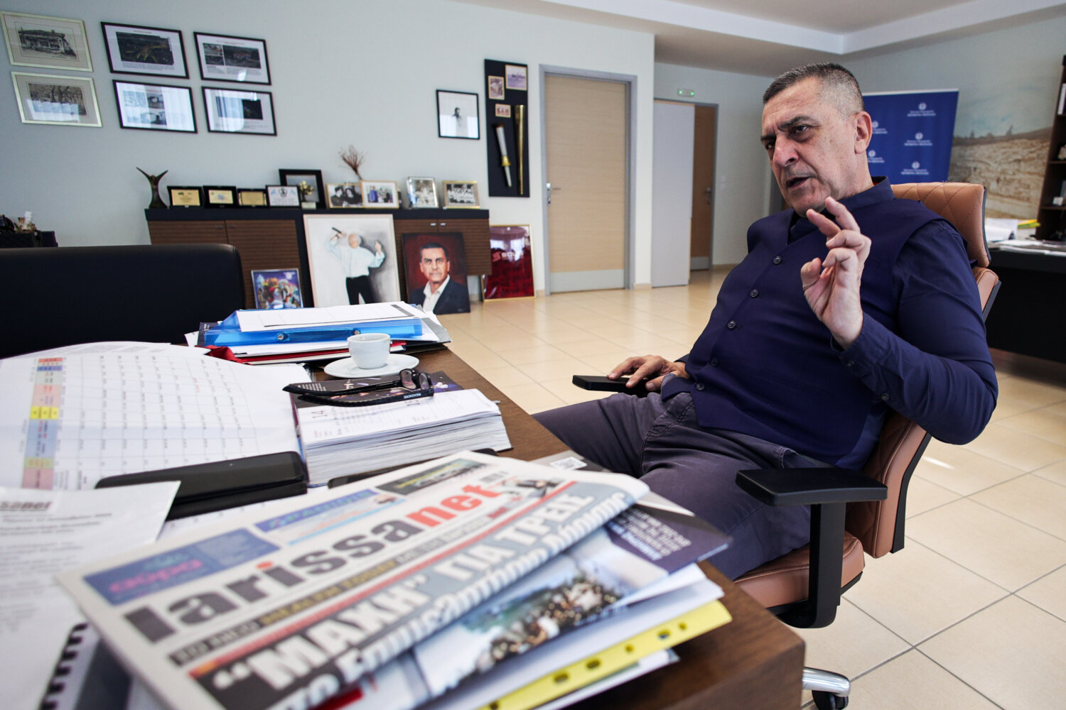Έδωσα σ’ αυτόν τον χώρο – στο κτίριο της Περιφέρειας Θεσσαλίας στη συμβολή των οδών Καλλισθένους και Θεοφράστου – ταυτότητα, του έδωσα ζωή. Μετέφερα την Πολιτική Προστασία και την Πυροσβεστική. Ήταν ένα κτίριο σχεδόν νεκρό, δεν είχε ταυτότητα. Από πίσω φτιάξαμε καινούργια γραφεία προς την οδό Φαρσάλων, μεταφέραμε υπηρεσίες. Θα μεταμορφώσουμε τον γωνιακό χώρο, θα τον κάνουμε κινηματογράφο και θέατρο. Προσπαθώ να δώσω ταυτότητα. Όπως ξέρετε στη ζωή μου παλεύω για να δώσω ταυτότητα σε πράγματα…».