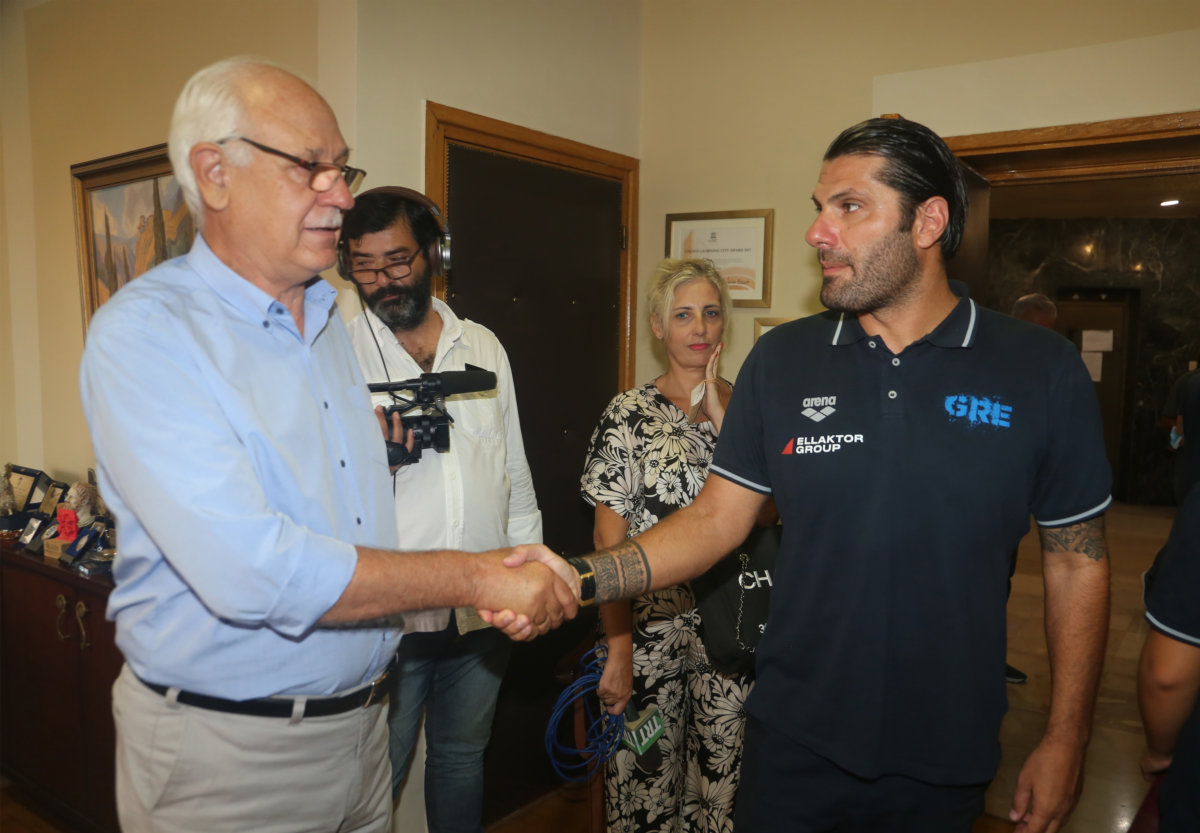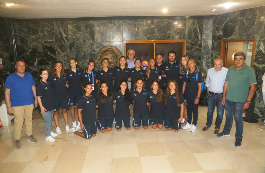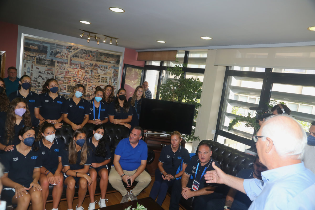 Στο Δημαρχείο βρέθηκαν εκ μέρους της ΚΟΕ, το μέλος του ΔΣ και πρόεδρος του ΝΟΛ κ. Γιώργος Κατσαντώνης, ο αρχηγός της αποστολής και υπεύθυνος των τμημάτων υποδομής της γυναικείας υδατοσφαίρισης Δημήτρης Κύρκος, ο προπονητής Γιώργος Τσόκας και η βοηθός του Άννα Χατζηγιωργάκη και οι παίκτριες Κωνσταντοπούλου Ευτυχία, Μπεκρή Αναστασία, Πιοβάν Νίκη, Μπέτα Ελένη, Δρακωτού Δέσποινα, Μαργαρίτη Κασιάννα- Μαρία, Κλαψιανού Ασημίνα, Γαλανοπούλου Θεοφανία, Καραμπέτσου Αριάδνη-Παντελία, Παπαδοπούλου Μαρία-Αλεξάνδρα, Φουράκη Ασπασία, Κανελλοπούλου Ιωάννα και Κοβάτσεβιτς Ευσταθία-Νεφέλη.