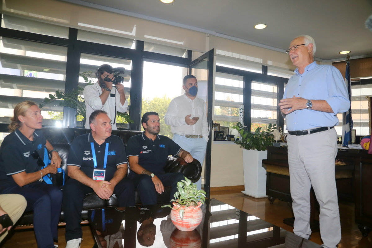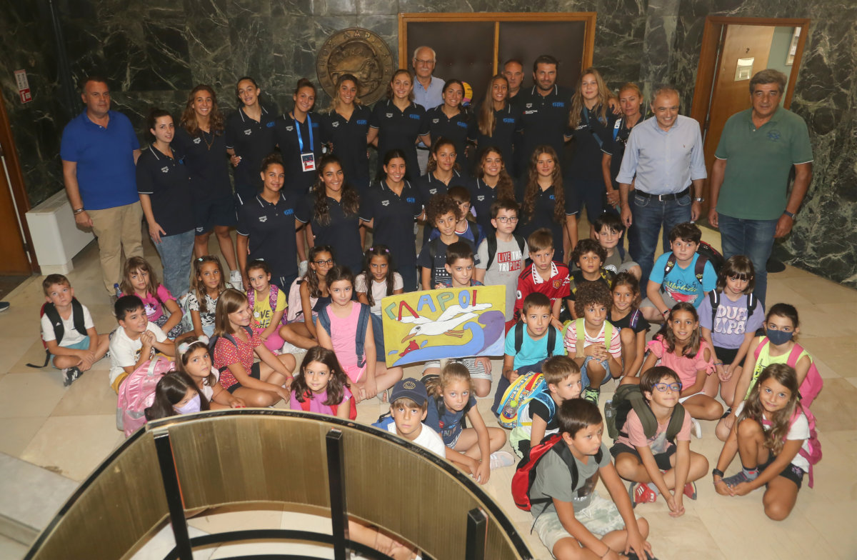 Τα κορίτσια της Εθνικής, το προπονητικό team και παράγοντες της Κολυμβητικής Ομοσπονδίας, πέρασαν την πόρτα του Δημαρχείου, πριν την έναρξη των αγωνιστικών τους υποχρεώσεων για σήμερα, με τον δήμαρχο να καλωσορίζει την αποστολή της Εθνικής.