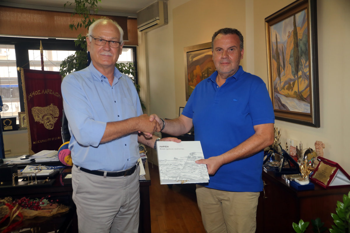 Ο Απ. Καλογιάννης προσέφερε στους υπευθύνους της αποστολής και στις παίκτριες αναμνηστικά δώρα του Δήμου Λαρισαίων.