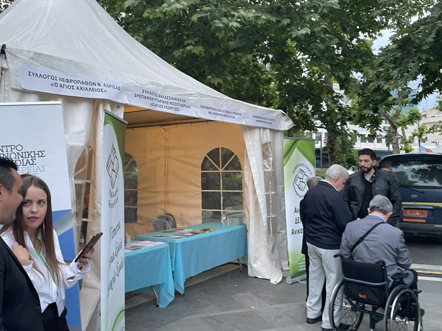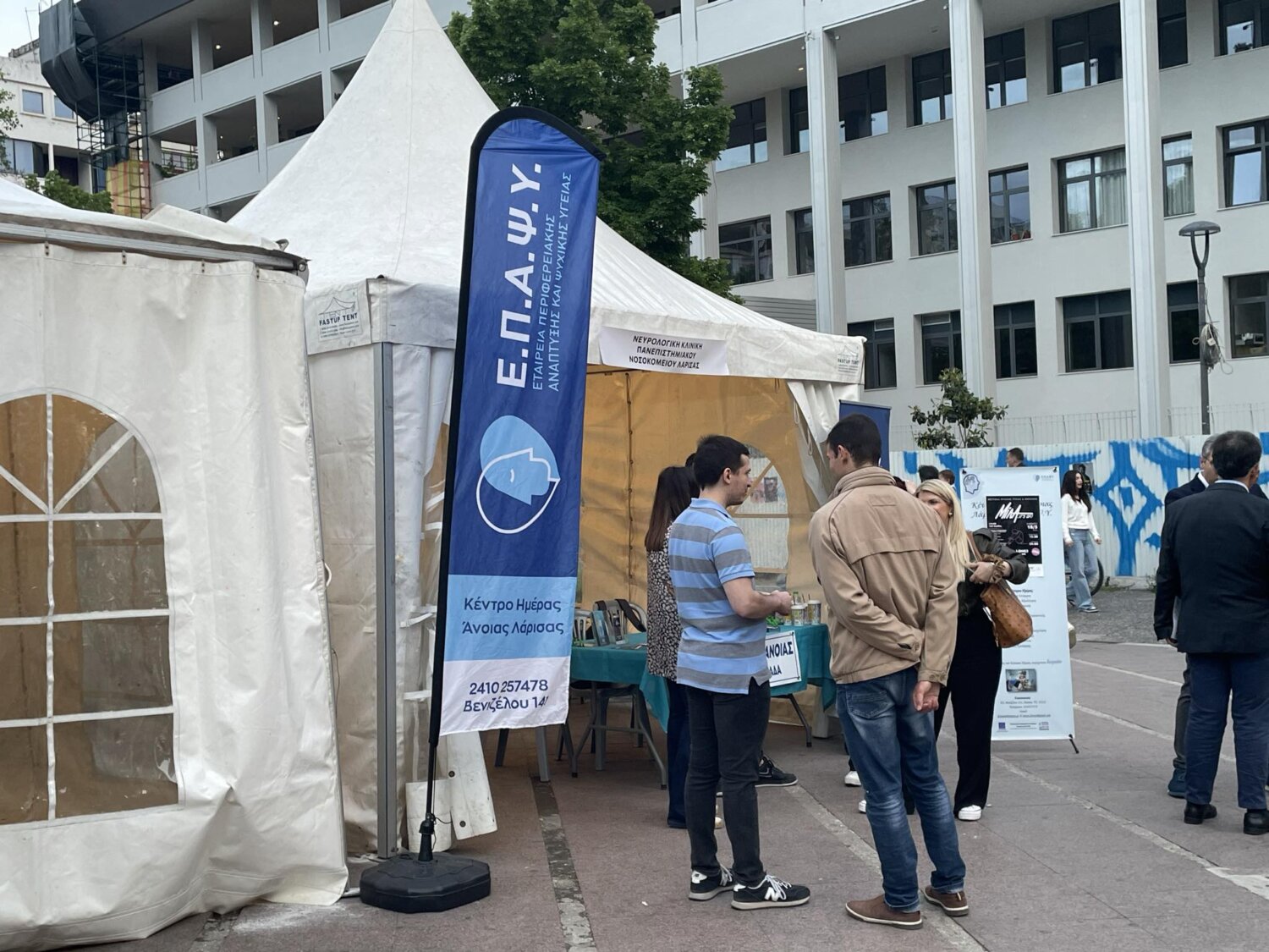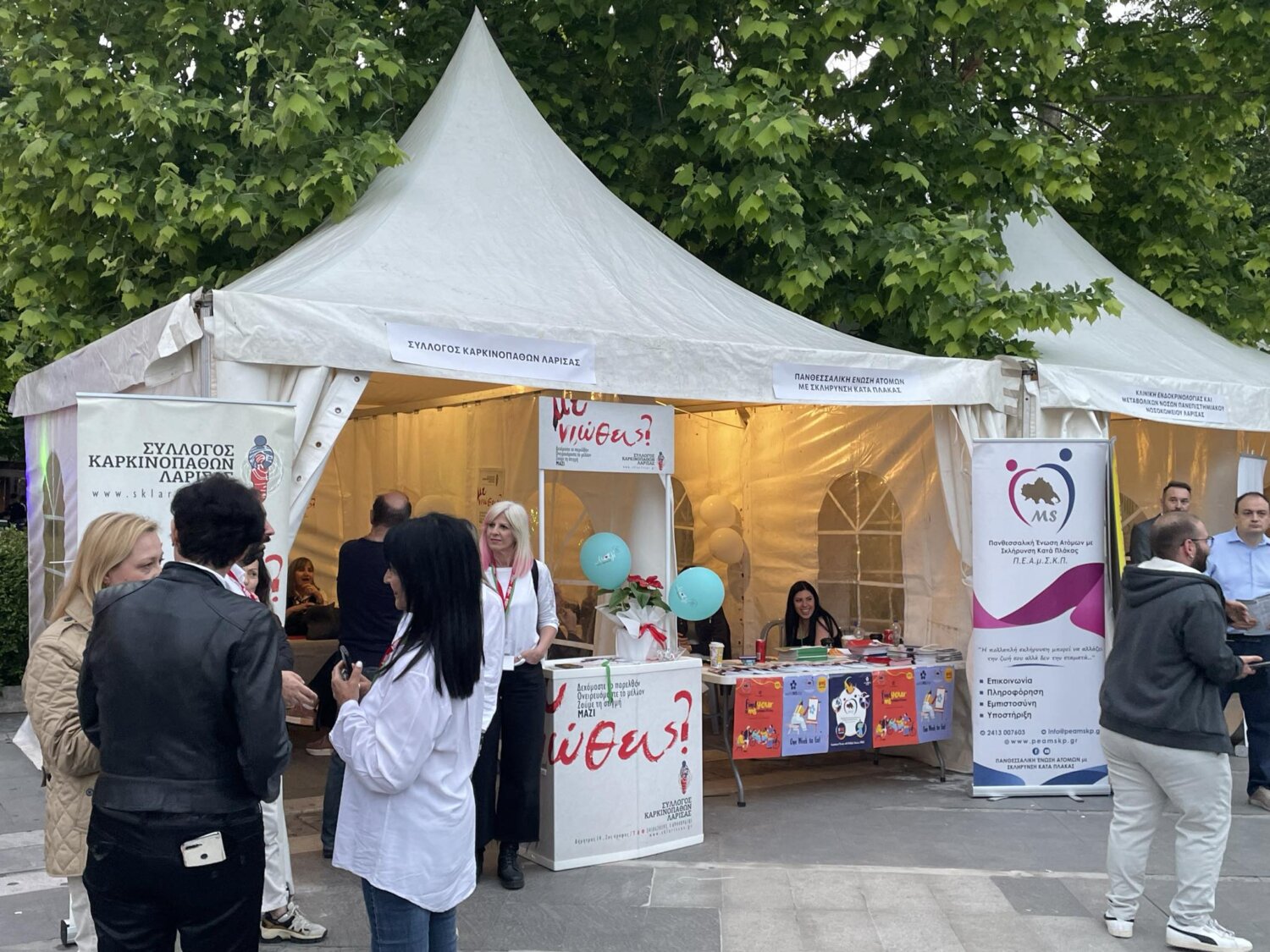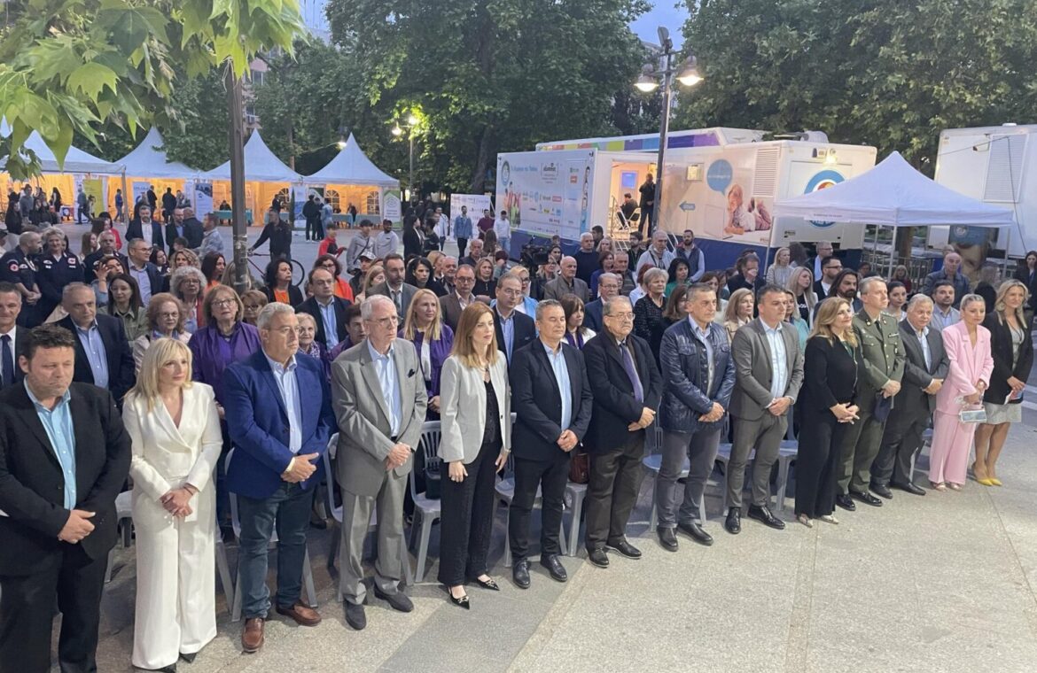 Στην Κεντρική Πλατεία Λάρισας πραγματοποιήθηκαν τα εγκαίνια της πολυθεματικής δράσης «Μαζί μια Αγκαλιά», που έχει ως στόχο την ενημέρωση και ευαισθητοποίηση των πολιτών σε θέματα υγείας και πρόληψης, όπως επίσης την ανάδειξη του κινήματος του ανθρωπισμού και της αλληλεγγύης,