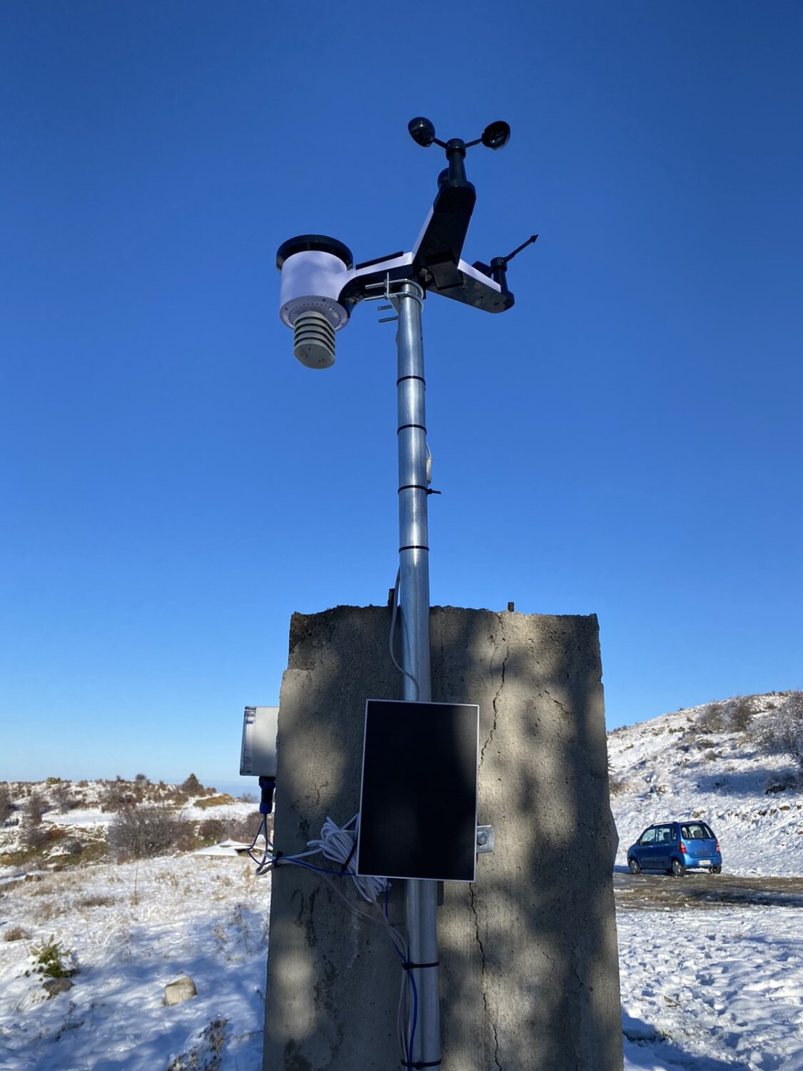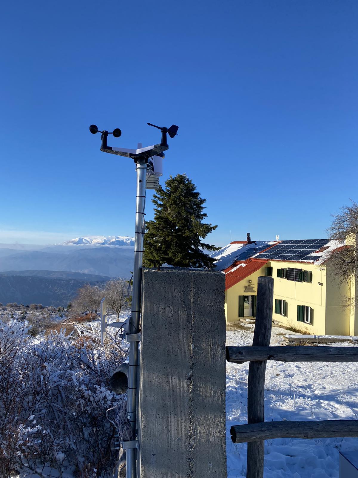 Το Σάββατο 9/12/23 μέσα σε ένα κατάλευκο τοπίο και με την θερμοκρασία συνεχώς στους -1 με -2 βαθμούς εγκαταστήσαμε τον μετεωρολογικό σταθμό με την πολύτιμη βοήθεια του συνεργάτη και πολύ καλού φίλου Βησσαρίων Μπακάλη.