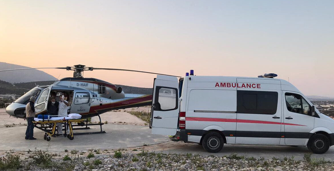 Σύμφωνα με ρεπορτάζ του skiathoslife.gr, άμεση ήταν και η συνδρομή του Πολυϊατρείο Σκιάθου που πραγματοποίησε αξονική τομογραφία. Οι γιατροί του Κέντρου Υγείας Σκιάθου από τα αποτελέσματά της και σε συνδυασμό με την κατάσταση της υγείας της, έκριναν αναγκαία την αεροδιακομιδή από το Διεθνές Αεροδρόμιο Σκιάθου -κάτι που έγινε στις 6:18 το απόγευμα- προς το Πανεπιστημιακό Γενικό Νοσοκομείο Λάρισας.