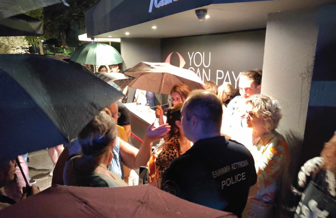Εξαγριωμένοι οι θεατές αποχώρησαν από τις θέσεις τους με τη φασαρία να συνεχίζεται έξω από την είσοδο του Κηποθέατρου, με άτομο της θεατρικής παραγωγής να τονίζει «δεν μπορώ να σας δώσω πίσω τα λεφτά, γιατί παίξαμε 40 λεπτά».