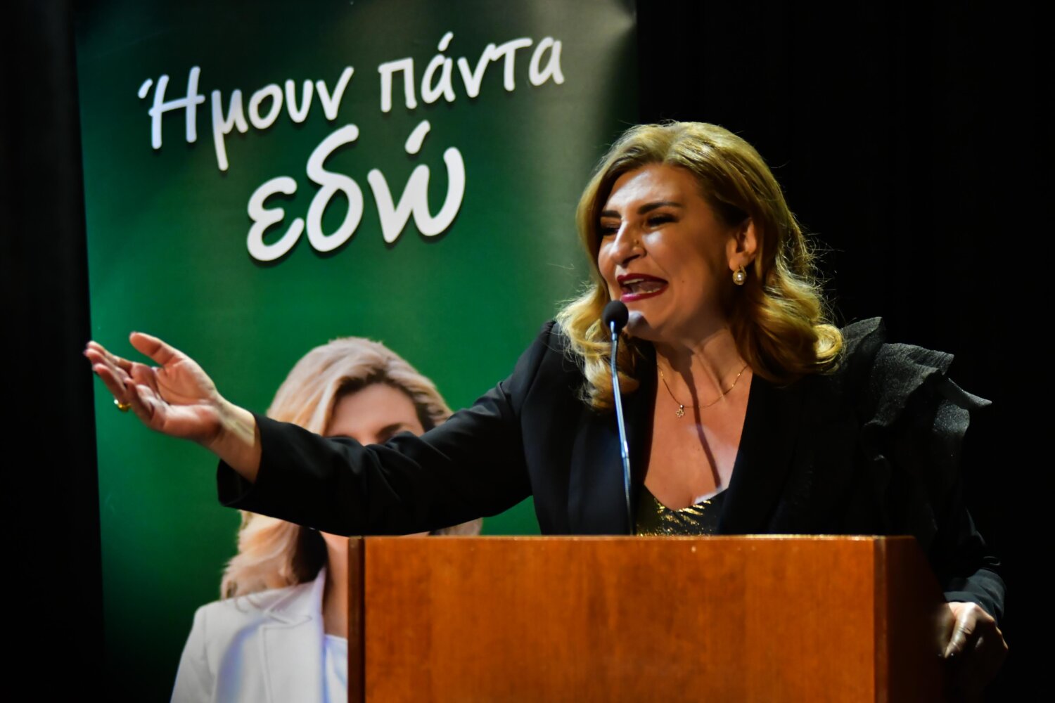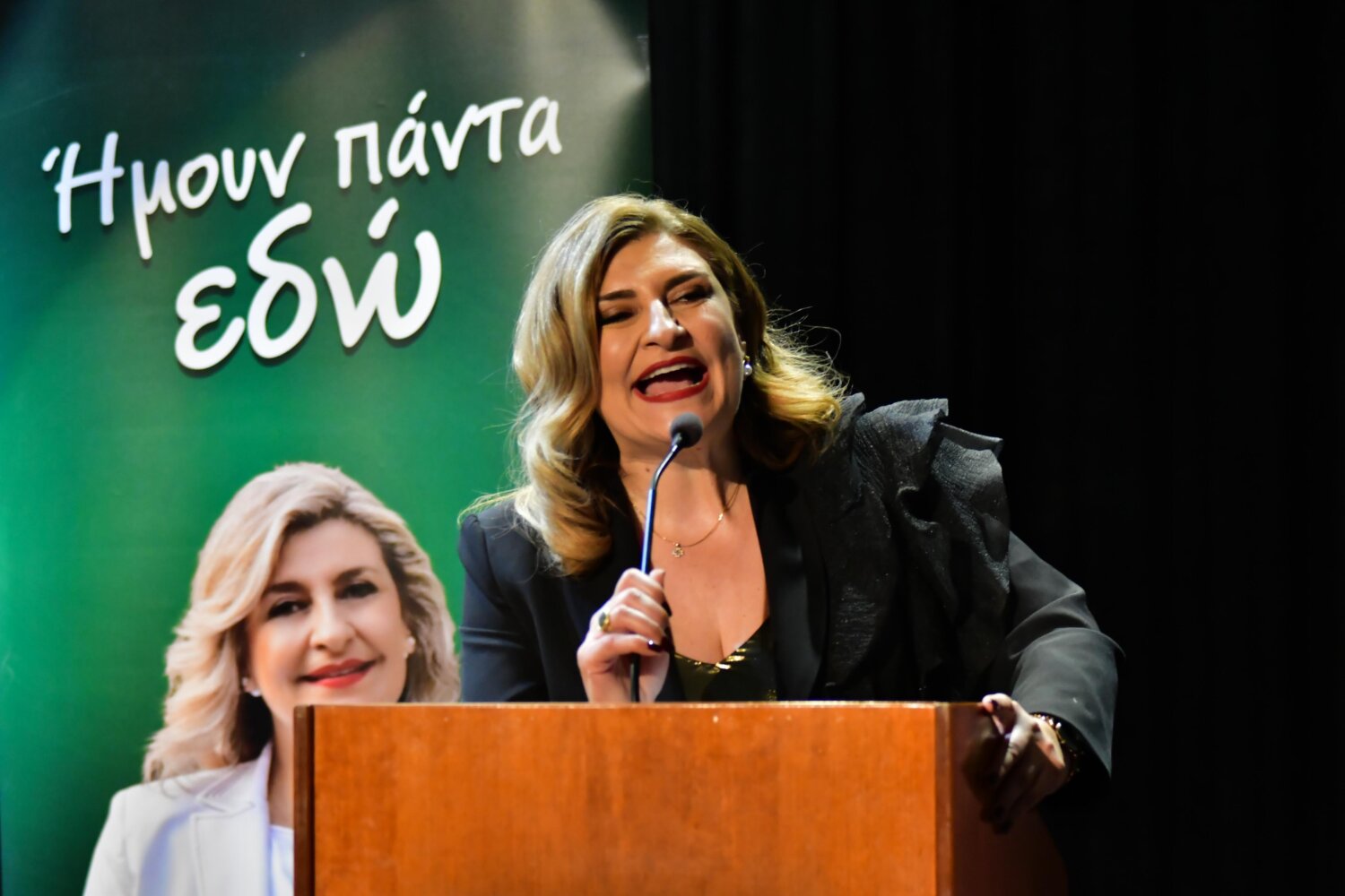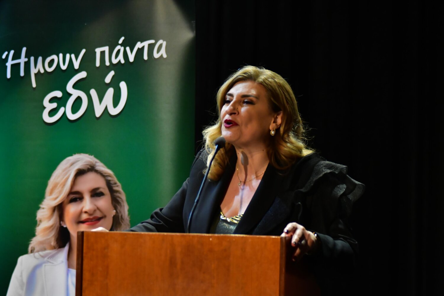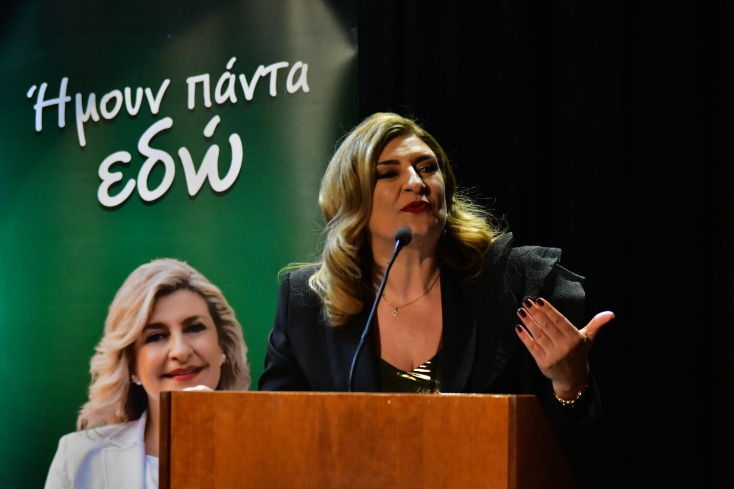 Κατάμεστη η αίθουσα της Δημοτικής Πινακοθήκης σήμερα για την Ευαγγελία Λιακούλη, η οποία διοργάνωσε εκδήλωση κοπής της πρωτοχρονιάτικης πίτας της.