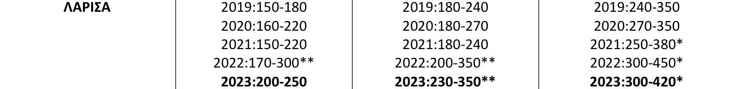 Δείτε τους συγκριτικούς πίνακες για τη Λάρισα 2016-2023: