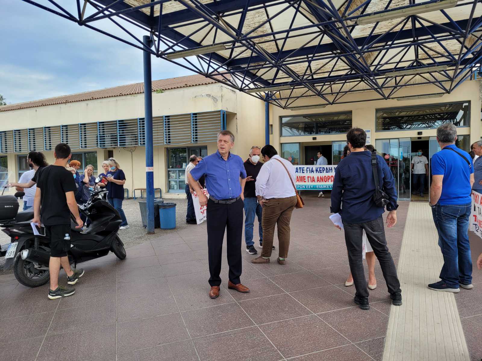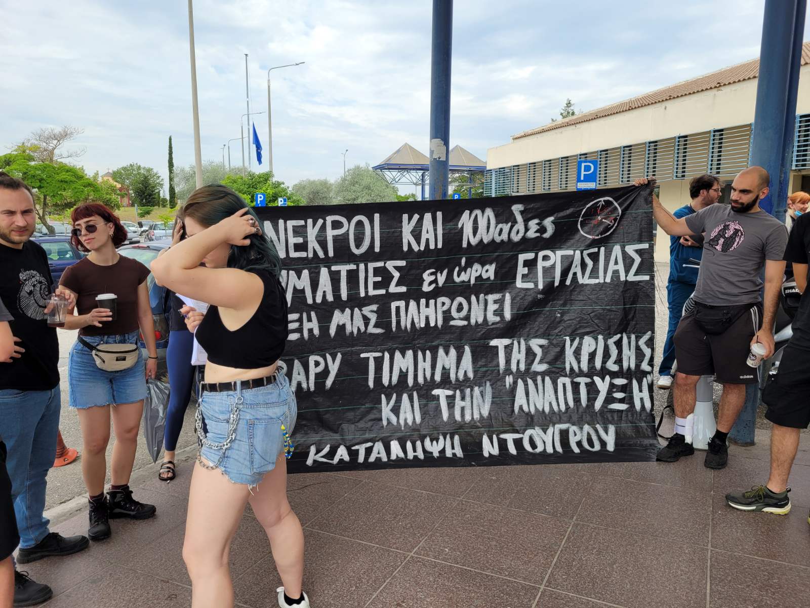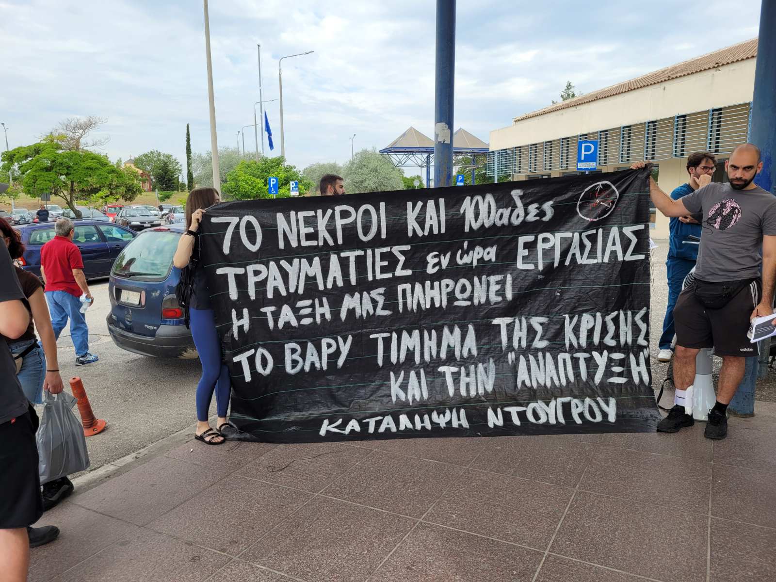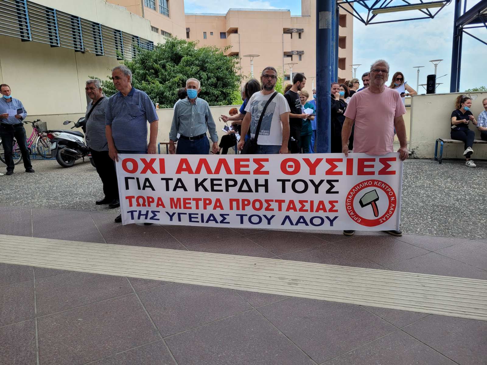 Πανό και συνθήματα σήμερα, το πρωί της Πέμπτης, από τον Σύλλογο Ιατρών ΕΣΥ – Ειδικευομένων ΠΓΝΛ και το Σωματείο Εργαζομένων ΠΓΝΛ, όπου διαμαρτυρήθηκαν στην Κεντρική Είσοδο του Πανεπιστημιακού Νοσοκομείου Λάρισας για το πρόσφατο εργατικό ατύχημα.