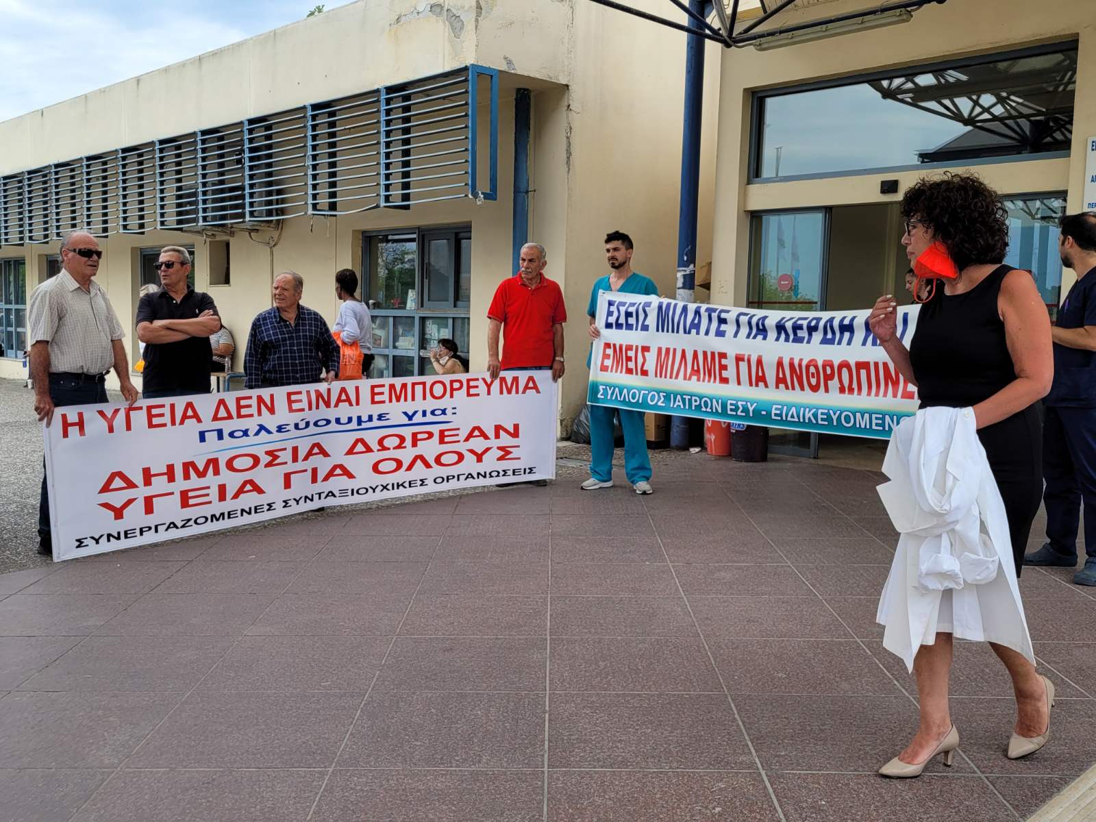 Η διευθύντρια στα Επείγοντα του Νοσοκομείου Λάρισας κ. Γεωργία Παπαδάμου και πρόεδρος του Σωματείου Ιατρών ΕΣΥ – Ειδικευμένων ΠΓΝΛ, τόνισε πως: “Για πρώτη φορά το σωματείο μας δεν θα μιλήσει για τα δικαιώματα του. Θα μιλήσει για την απαξίωση του ΕΣΥ, για τα Τέμπη, για τον “καινούργιο σταθμάρχη” που ψάχνουν αυτή τη στιγμή, με αφορμή το εργατικό ατύχημα που έγινε στα μαγειρεία.Όλα αυτά είναι συνέπεια της πολιτικής που ακολουθείται όλα αυτά τα χρόνια από όλες τις κυβερνήσεις”.