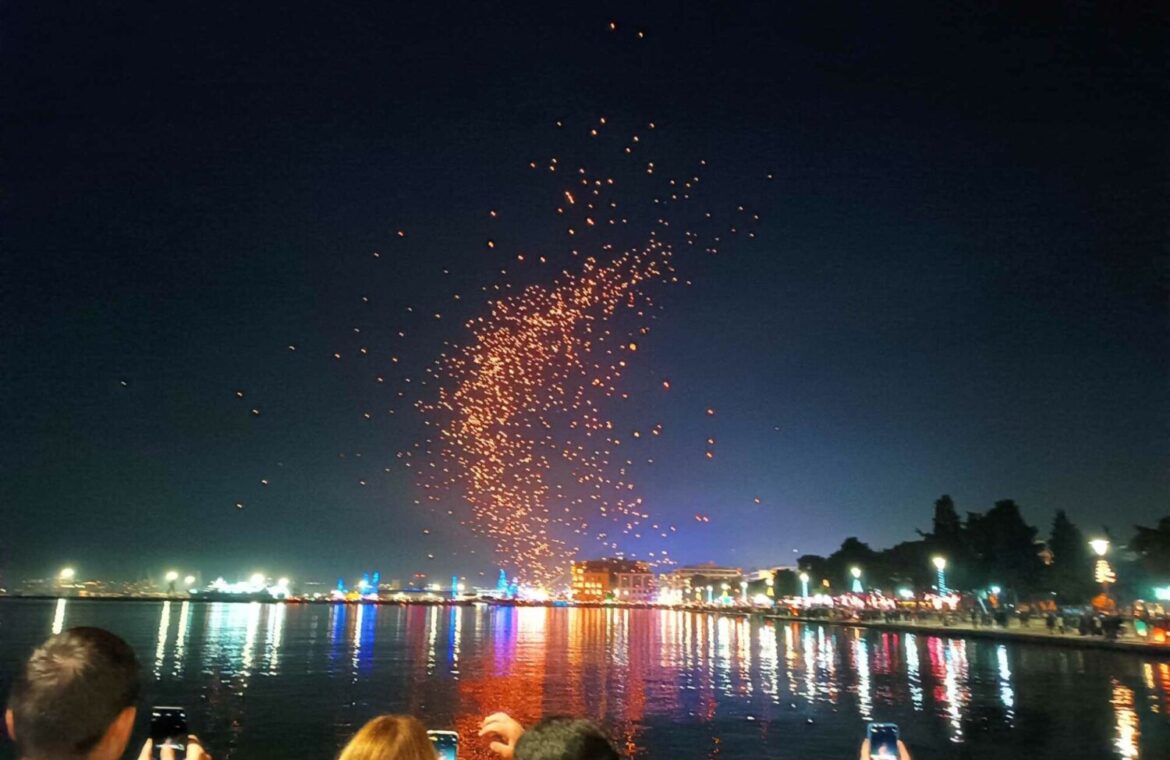 Τα φαναράκια απελευθερώθηκαν στον ουρανό από μικρούς και μεγάλους, μπροστά από το Πανεπιστήμιο Θεσσαλίας στην παραλία, για να καταλήξουν λίγο μετά στη θάλασσα…