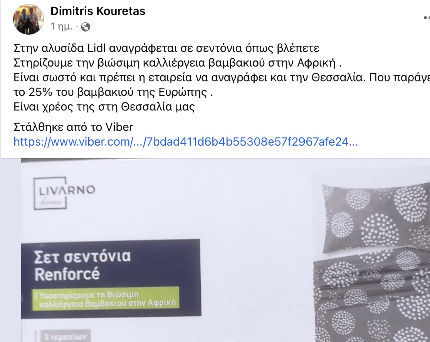 Πολλούς συμπαραστάτες βρήκε όπως φάνηκε από την απήχηση που είχε η ανάρτησή του, ο Περιφερειάρχης Θεσσαλίας κ. Δημήτρης Κουρέτας, σχετικά με το τι αναγράφεται σε σεντόνια που πουλάει γνωστή αλυσίδα σούπερ μάρκετ.