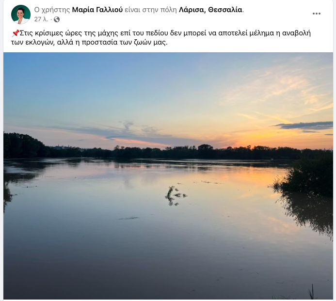 Ιδιαίτερα δηκτική σε ανάρτησή της εμφανίστηκε η υποψήφια περιφερειακή σύμβουλος Λάρισας με τον Δημήτρη Κουρέτα, Μαρία Γαλλιού, με αφορμή – προφανώς – τις δηλώσεις του περιφερειάρχη Κώστα Αγοραστού, περί ανάγκης αναβολής των αυτοδιοικητικών εκλογών.