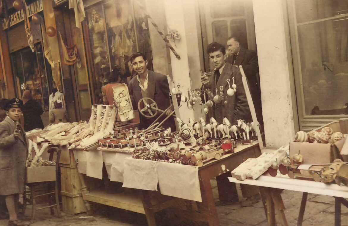 Κι αυτό συνέβαινε από τα τέλη του 19ου αιώνα. Η οδός Ερμού ήταν χαραγμένος εμπορικός δρόμος ήδη από το πρώτο σχέδιο πόλης, της Αθήνας, των Κλεάνθη και Σάουμπερτ· άρχισε να φτιάχνεται το 1834, ενώ το 1938 ο δρόμος στρώθηκε με σύστημα Μακαντάμ. Από τον Κεραμικό μέχρι το Μοναστηράκι συναντούσες κουρεία, τσαρουχάδικα, παλαιοπωλεία, ταβέρνες, σταύλους αλλά και χάνια. Σε αυτόν τον κεντρικό δρόμο της Αθήνας συγκεντρωνόταν όλος ο κόσμος για να γιορτάσει την αλλαγή του χρόνου.
