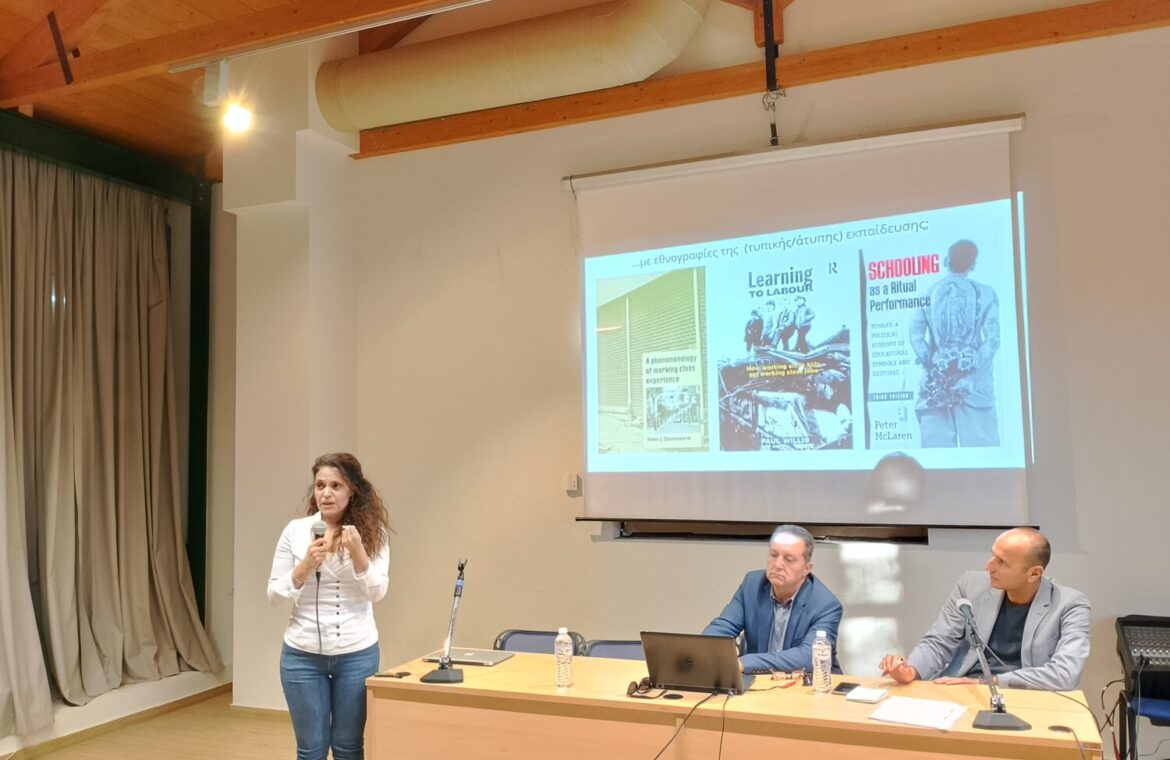 «Η εκπαίδευση έχει φορτωθεί διαχρονικά το βάρος της κοινωνικής αναπαραγωγής» τόνισε στη συνέχεια η κα Ευστρατόγλου και ανέλυσε τον τρόπο που οι δάσκαλοι αλληλεπιδρούν με τους μαθητές στην περίπτωση της με τους κρατούμενους και πως η έρευνα αυτή επηρέασε προσωπικά και την ίδια.