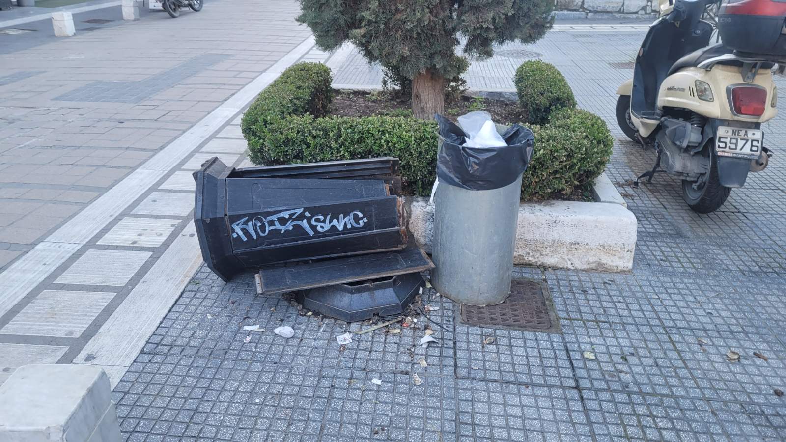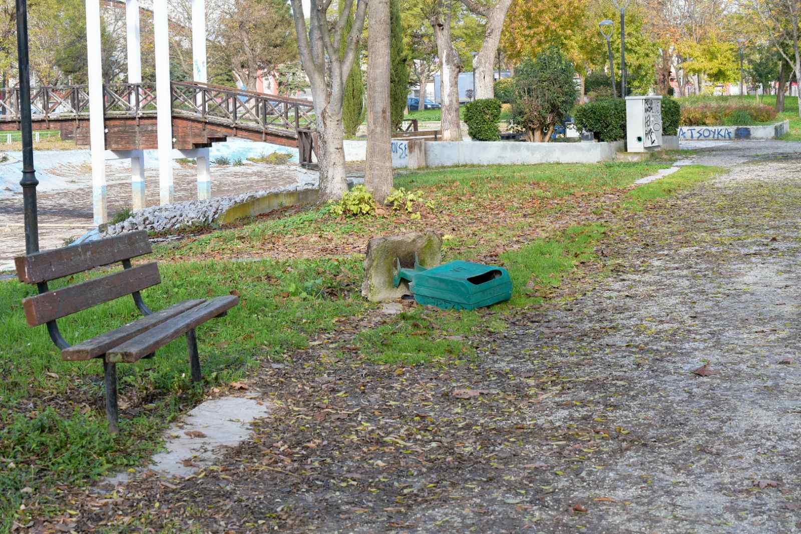 Πλήρη εγκατάλειψη, σκουπίδια παντού, πεσμένοι και αναποδογυρισμένοι κάδοι απορριμμάτων, περιττώματα πουλιών, ενώ τα φθινοπωρινά φύλλα έχουν καλύψει πεζοδρόμους και πλατείες, κάνοντας το έδαφος ιδιαίτερα ολισθηρό και επικίνδυνο για τους πεζούς. Οι πολίτες καυτηριάζουν το θέμα εδώ και καιρό μέσα από τα σόσιαλ μίντια αναρτώντας φωτογραφίες και κρούοντας τον κώδωνα του κινδύνου σε μια δημοτική αρχή που κωφεύει… εκκωφαντικά.
