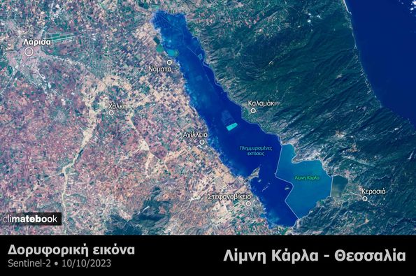 Στην έκταση που είχε πριν την κακοκαιρία Daniel επιστρέφει η λίμνη Κάρλα, καθώς όπως αποτυπώνεται σε νέες δορυφορικές εικόνες που δίνονται στη δημοσιότητα, η λίμνη Κάρλα ανέρχεται σε 38.000 στρέμματα (όσο ήταν δηλαδή πριν την κακοκαιρία Daniel), ενώ στις 10 Οκτωβρίου 2023 ανερχόταν σε 180.000 στρέμματα.