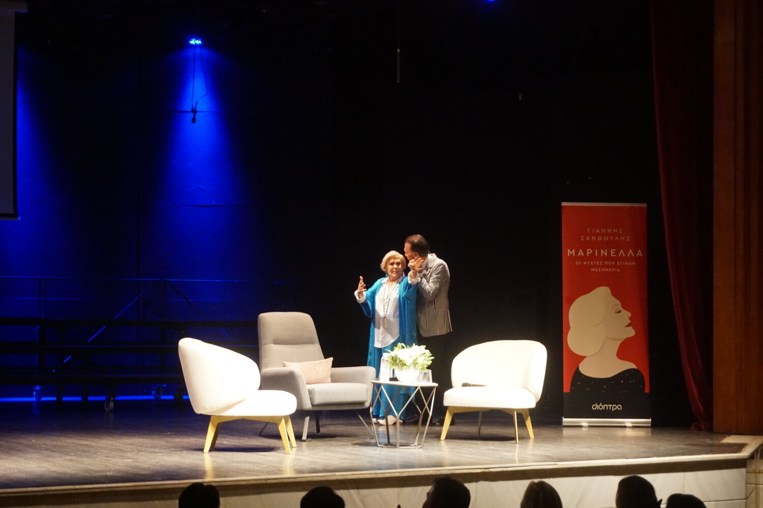 Η Μαρινέλλα, κορυφαία εν ζωή Ελληνίδα ερμηνεύτρια έγινε αφορμή για ένα βιβλίο που εξιστορεί μέσα από πολύμηνες «μεσημεριανές» συζητήσεις όλη της τη ζωή κι ό,τι απόσταγμα προέκυψε σε μια καριέρα που αγγίζει κοντά εβδομήντα χρόνια διαρκούς παρουσίας. Η διαφορά από μια συνεπή βιογραφία είναι πως απέναντί της είχε τον Γιάννη Ξανθούλη σαν αντίστιξη στην αφήγηση της ζωής της.