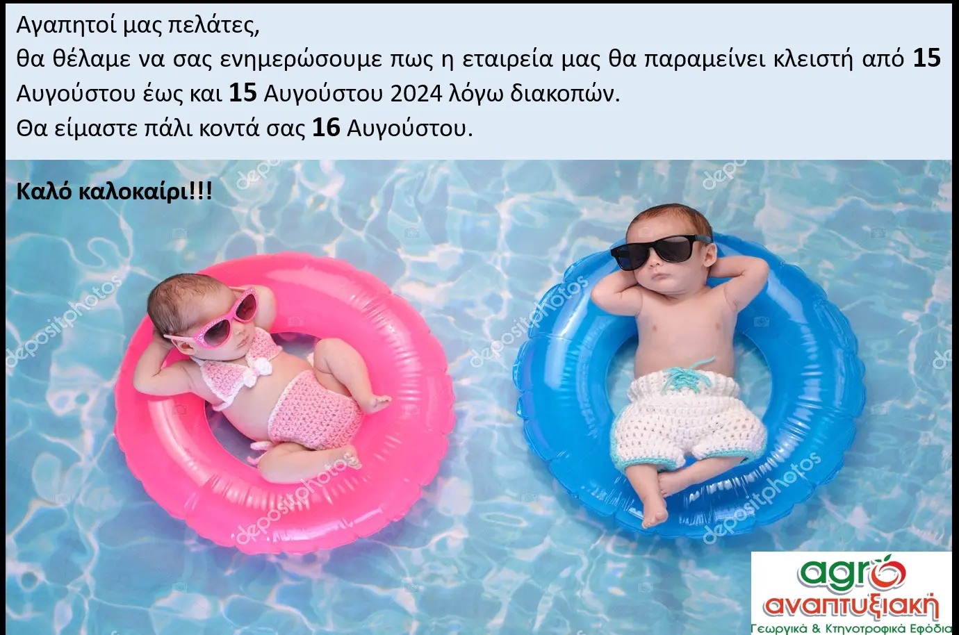 Σύμφωνα με αυτή η επιχείρηση κλείνει από τις… 15 μέχρι τις… 15 Αυγούστου και μας εύχεται καλό καλοκαίρι και καλή ξεκούραση. Μας δίνει ραντεβού παραδοσιακά για τις… 16 Αυγούστου!!!
