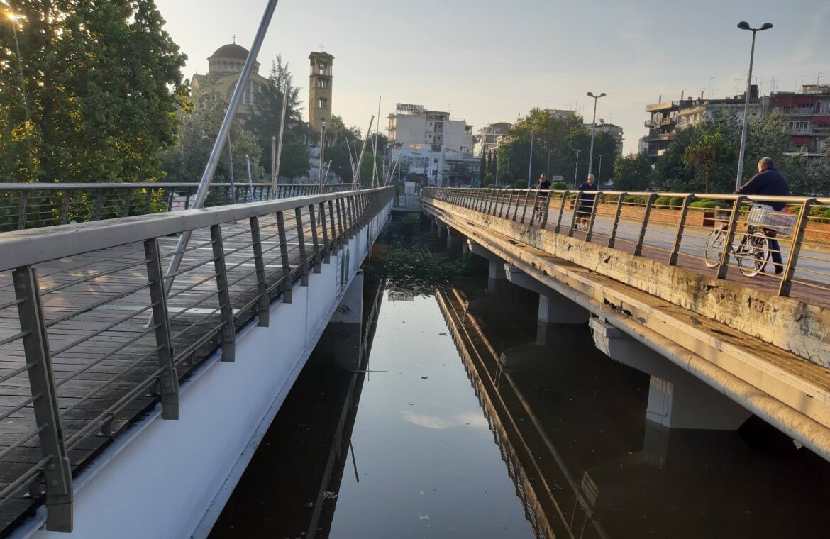 Στην εσωτερική κοίτη του Πηνειού πλησίον του κέντρου της Λάρισας τα ύδατα έχουν καλύψει όλη σχεδόν την εσωτερική κοίτη του ποταμού.